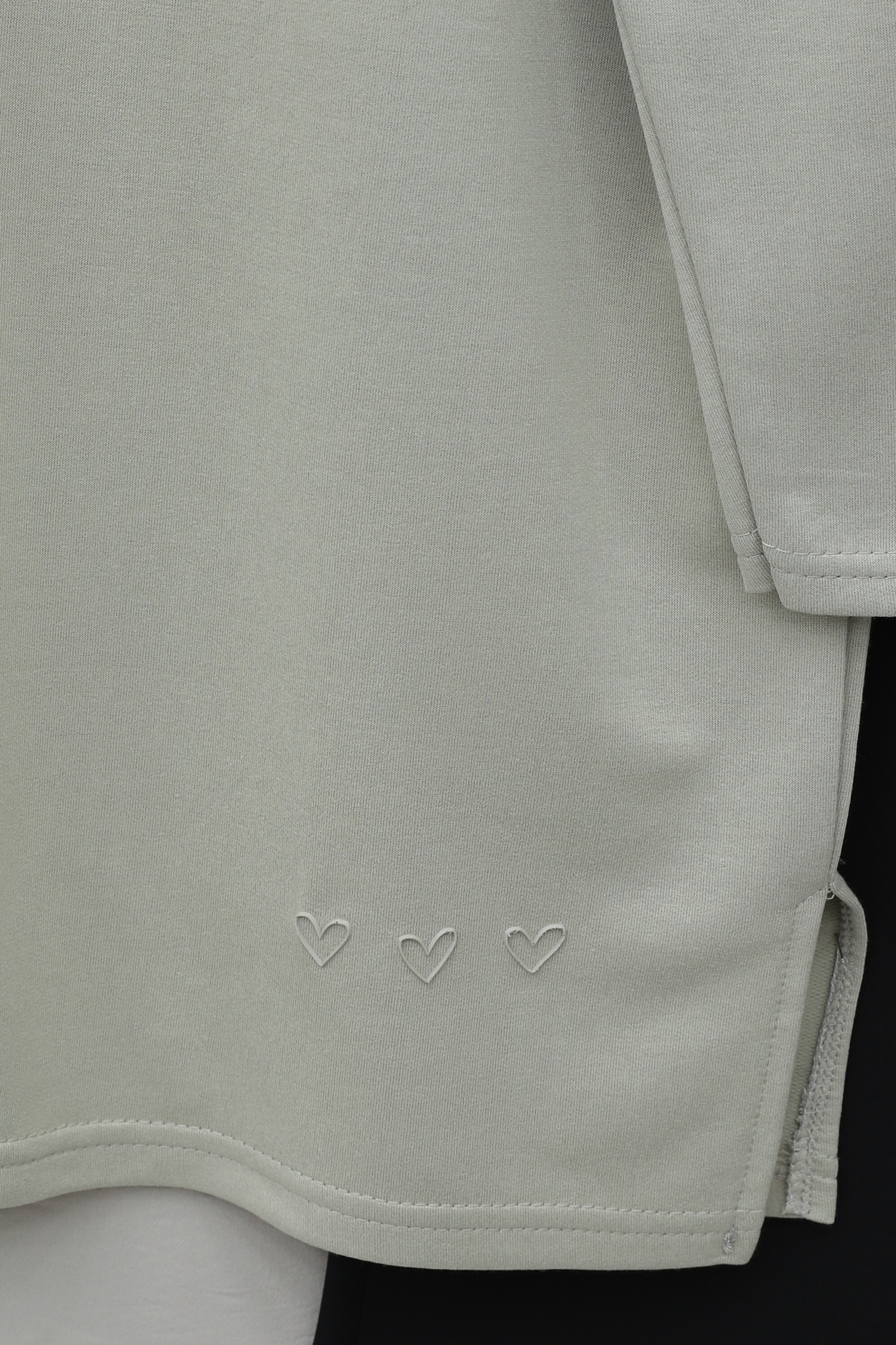 Eteği Kalp Detaylı Yırtmaçlı Salaş Penye Tunik -Taş