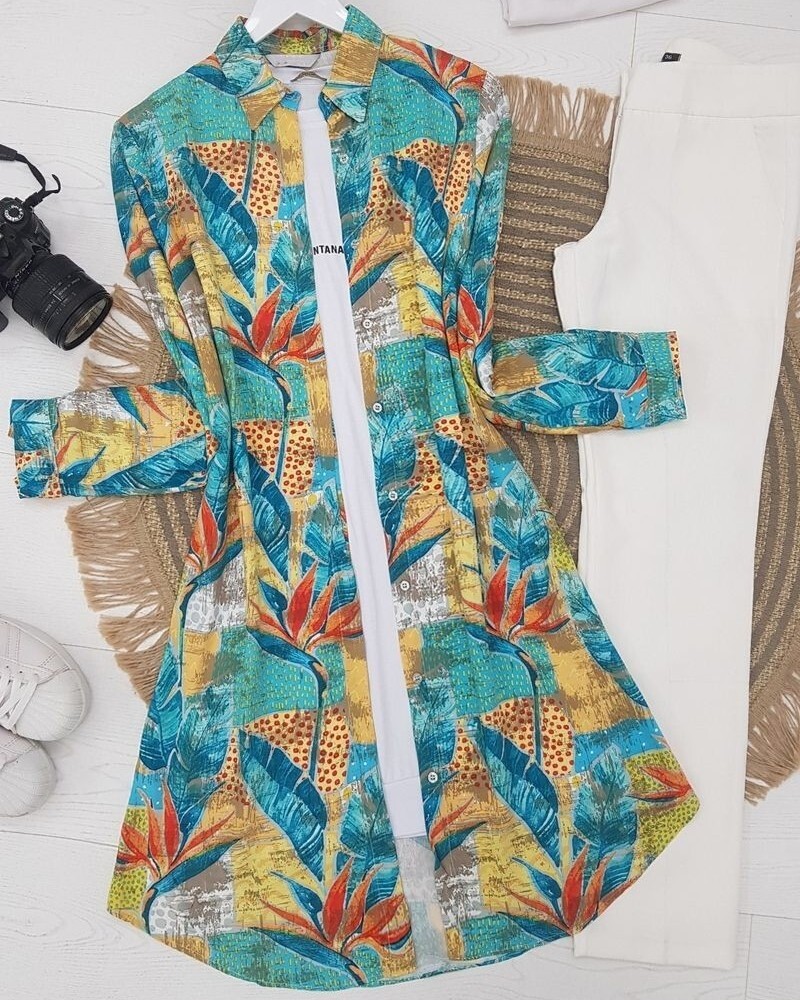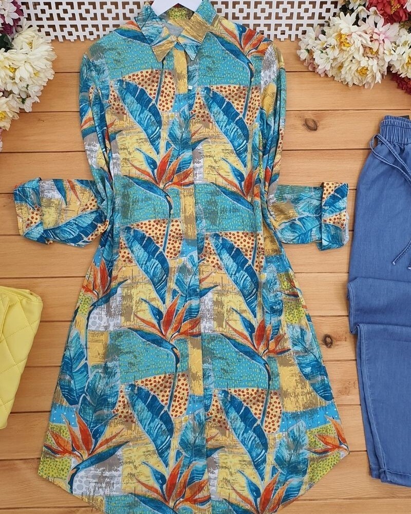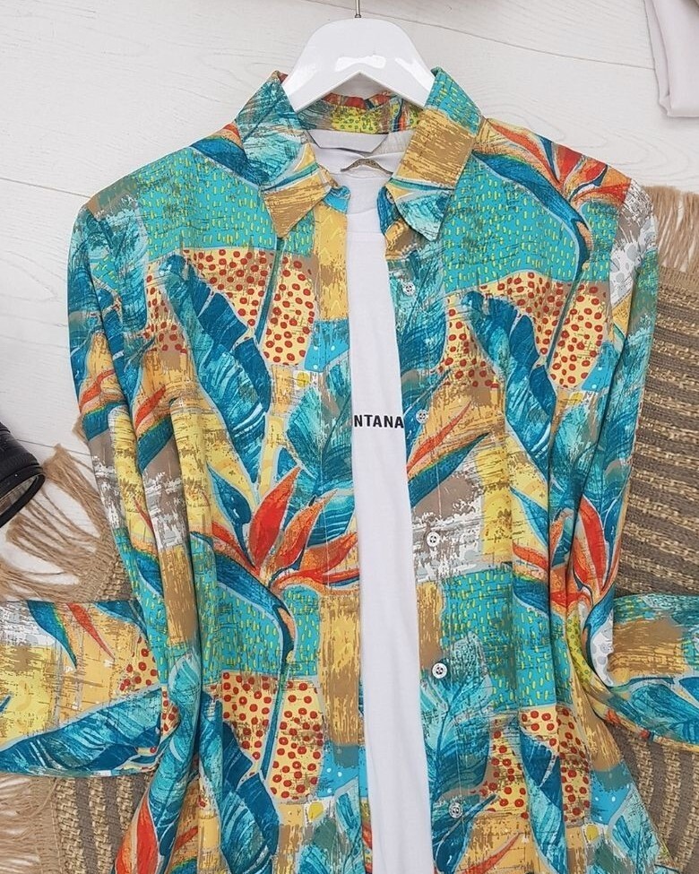 Etnik desen, önden düğmeli viskon gömlek modelimiz yeni sezonun en çok sevilen parçalarındandır.