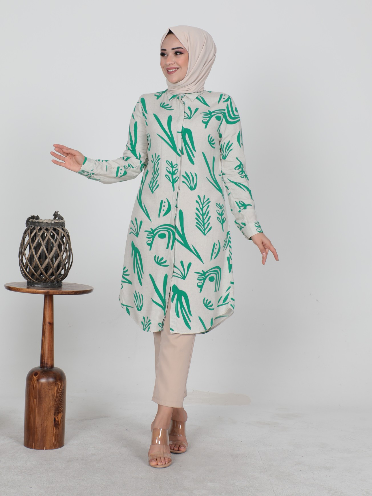 Not: Ürün içeriği tunikten oluşmaktadır. (Pantolon, ayakkabı, çanta ve takılar dekor amaçlı kullanılmaktadır.)