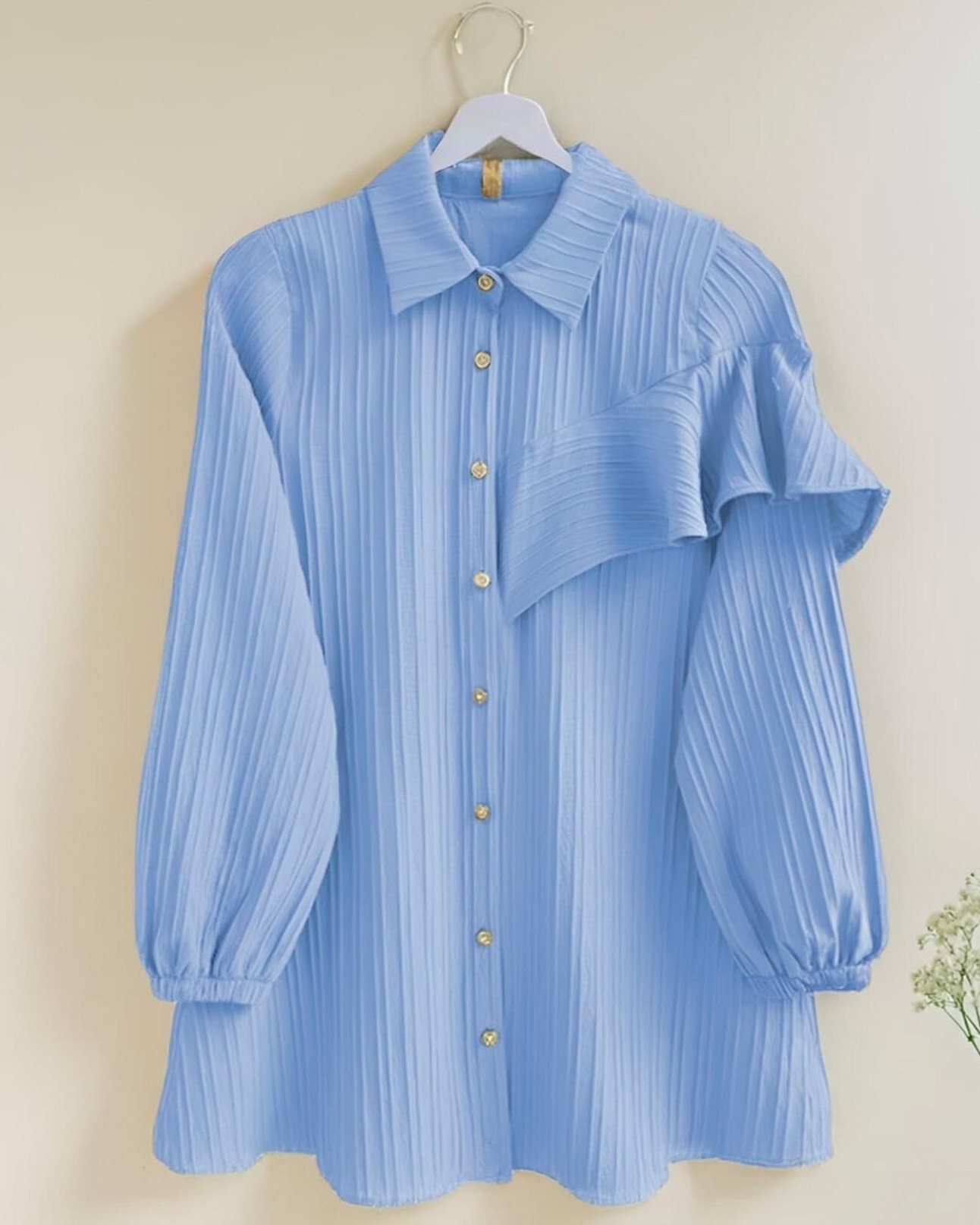 Kolu Fırfır Detaylı Lastikli Tunik, feminen fırfır detayları ve konforlu lastik yapısıyla şıklığı günlük rahatlıkla buluşturuyor. Zarif duruşuyla her kombine uyum sağlar.