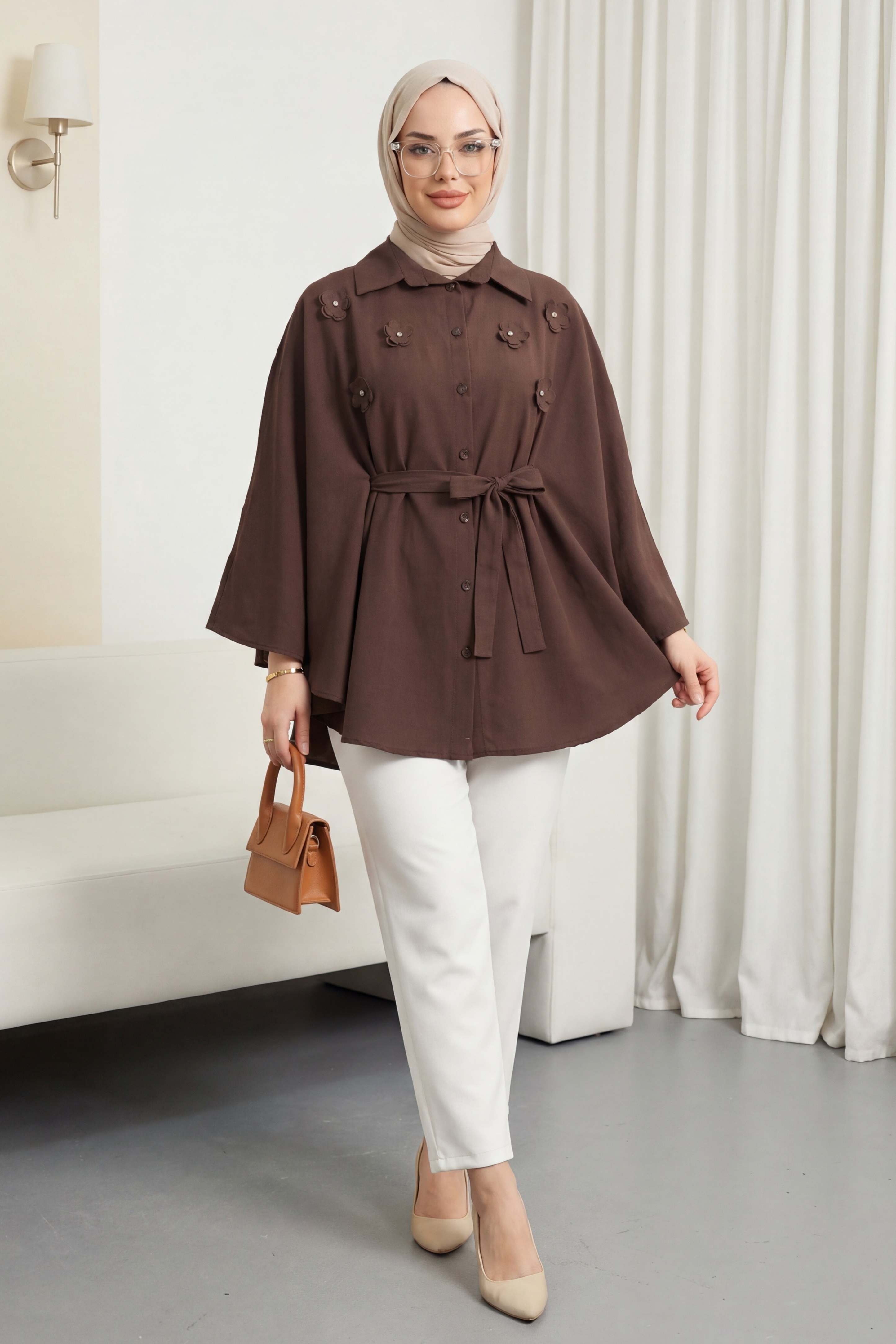 Zarif çiçek detaylarıyla feminen bir dokunuş sunan Önü Çiçek Detaylı Beli Bağcıklı Düğmeli Panço, şıklığı ve konforu bir arada arayanlar için ideal. Ayarlanabilir bağcık detayı sayesinde vücuda uyum sağlar, düğmeli tasarımıyla kolayca giyilip çıkarılır. Serin havalarda stilinizi tamamlayacak şık ve özgün bir parça!