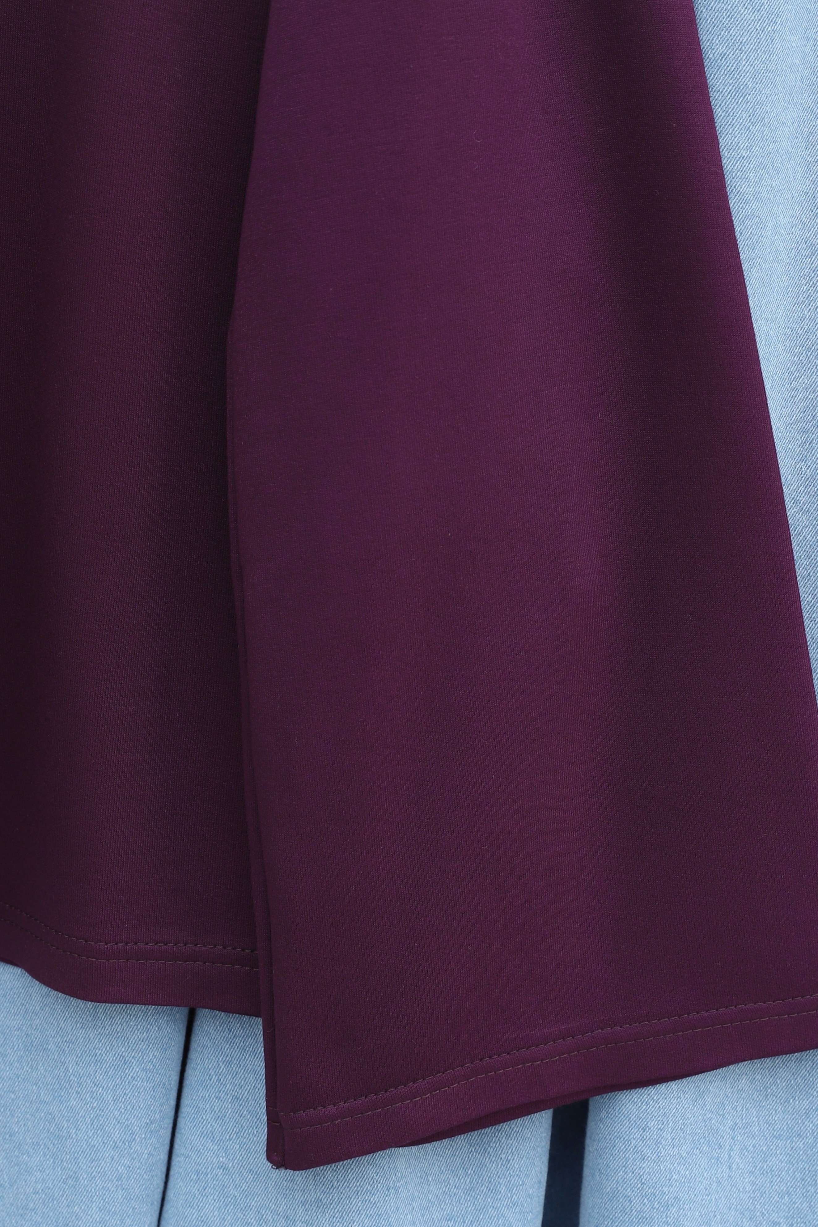 Önü Çiçek Nakışlı Yuvarlak Yaka Salaş Penye Bluz -Mürdüm