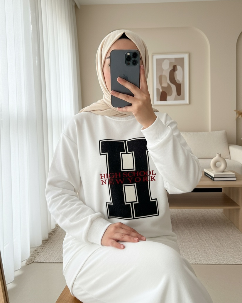 Not: Ürün içeriği sweatshirtten oluşmaktadır. (Gömlek, pantolon, ayakkabı, çanta ve takılar dekor amaçlı kullanılmaktadır.)