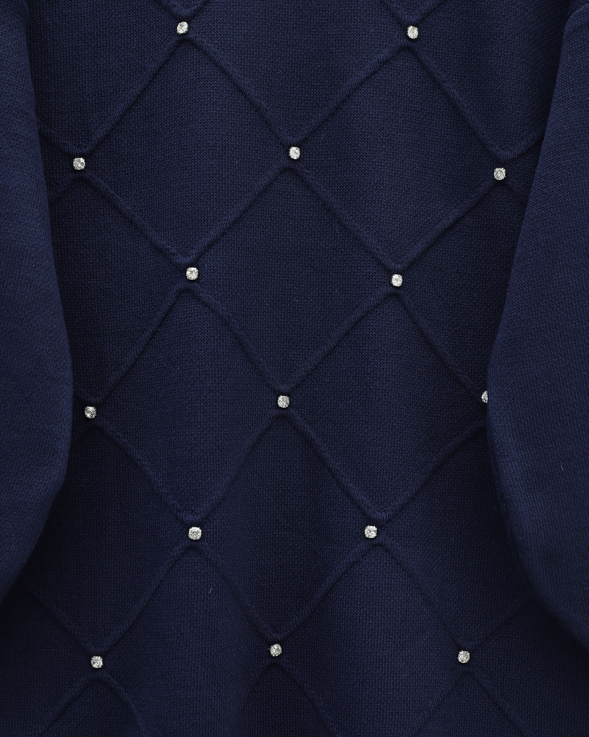 Taş detaylı kare desenli triko tunik, zarif detaylarıyla şıklığınızı ön plana çıkarır. Hem rahat hem de göz alıcı bir görünüm için mükemmel bir tercih.