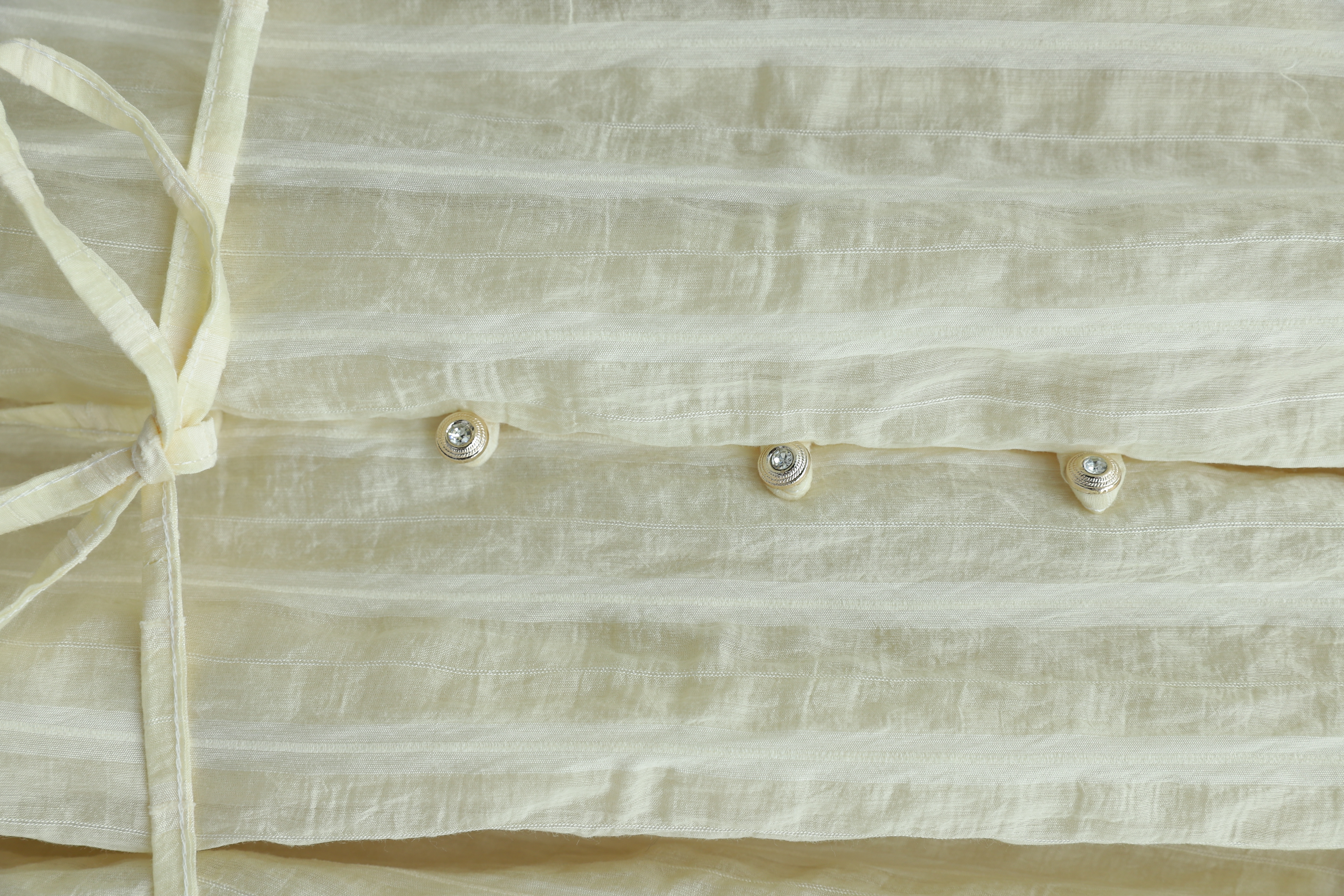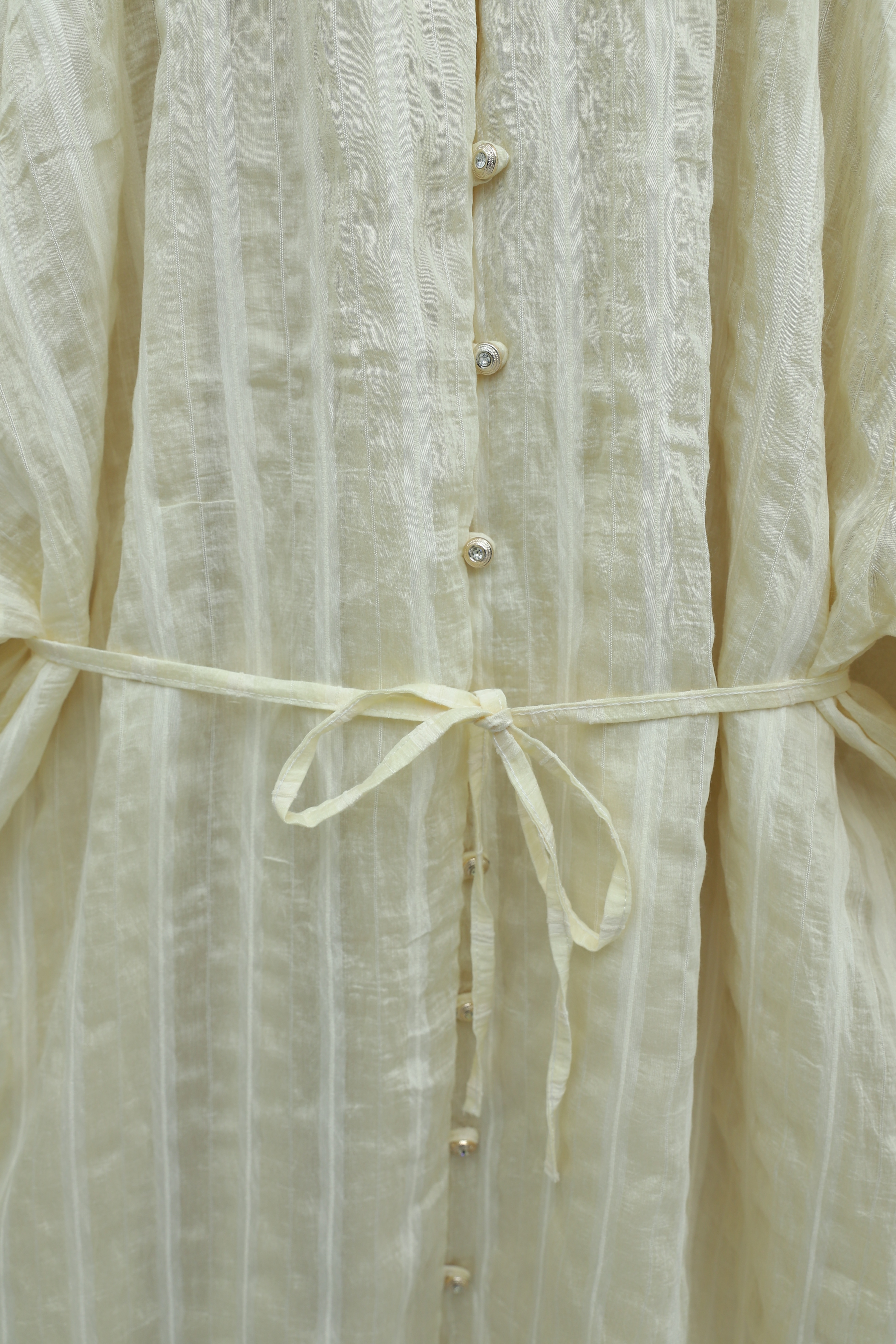 Yakası Fırfırlı Balon Kol Biritli Gofre Gömlek -Açık Sarı