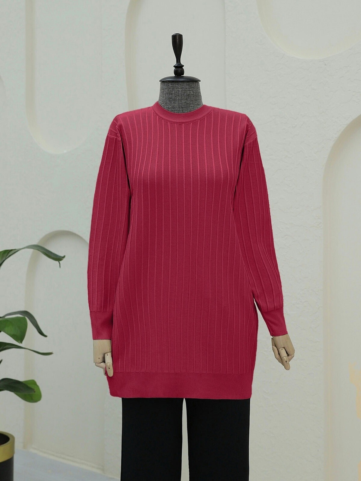 Yuvarlak yaka ince çizgili triko tunik, şıklığı ve rahatlığı bir arada sunar. İnce çizgili tasarımı, modern bir görünüm sağlar, yuvarlak yaka ise zarif bir detay ekler. Hem günlük kombinlerde hem de şık bir stil arayışında ideal bir tercihtir.