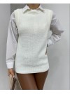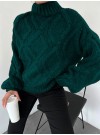 Yarım Boğazlı Balon Kol Kışlık Kazak -Beyaz