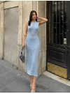 Merserize Şerit Yırtmaçlı Triko Elbise -Bebe Mavi