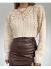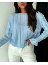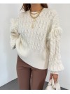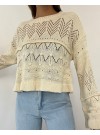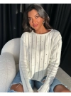 Taşlı Ajurlu Triko Kazak -Taş