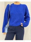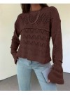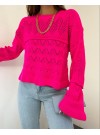 Kabartma Desenli Ajurlu Triko Kazak -Fuşya