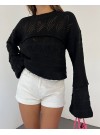 Ajurlu Ponponlu Uzun Kol Triko Kazak -Siyah