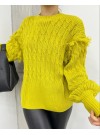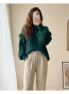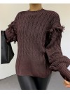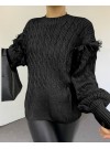 Balon Kol Püsküllü Triko Kazak -Siyah