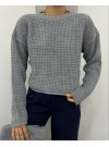 Yuvarlak Yaka Örgü Triko Kazak -Gri