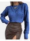 Kadın Uzun Kollu V Yaka Kol Delikli Baklava Desen Detaylı Triko Kazak