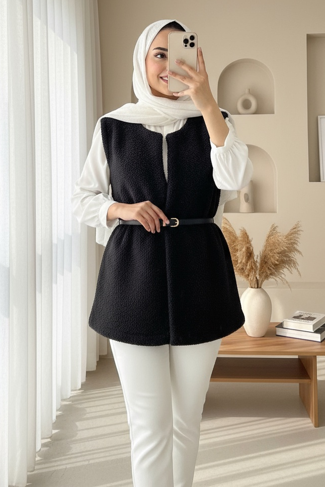 Kemerli, astarlı, peluş yelek modelimiz yeni sezonun en çok sevilen modelleri arasında yer almaktadır.