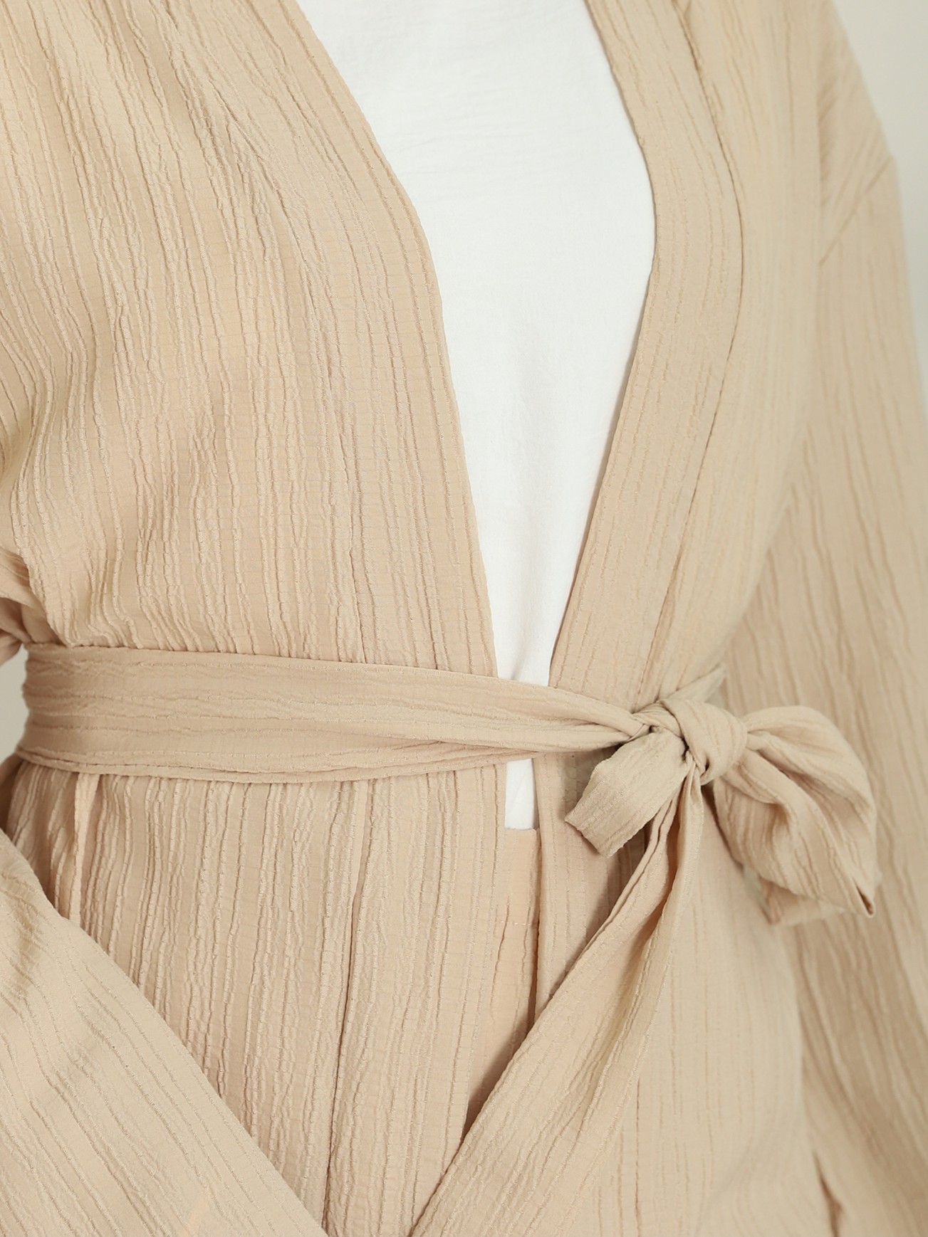 Beli Kuşaklı İspanyol Kol Krınkıl İkili Takım -Açık Vizon