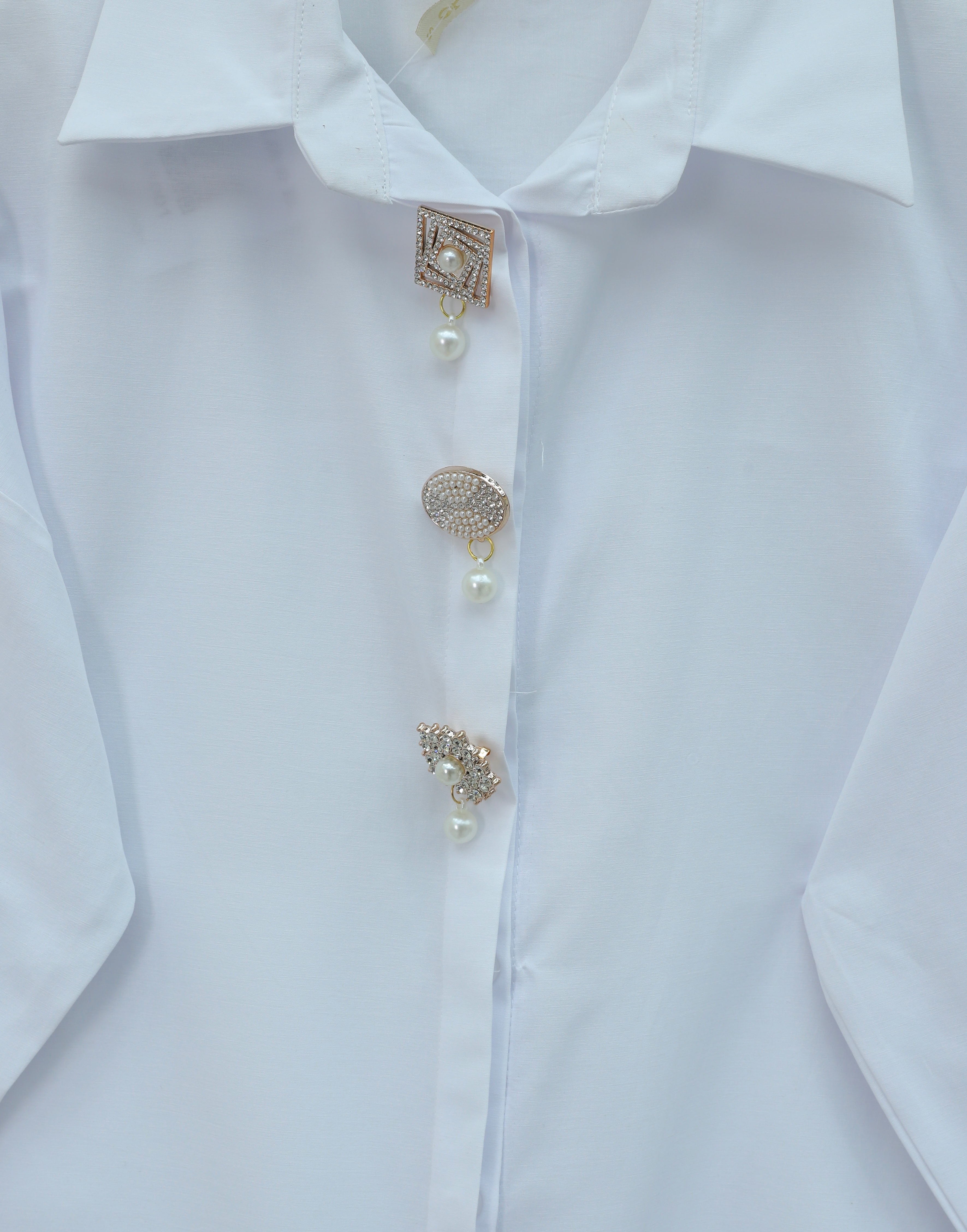 “Broş detaylı gömlek”, “gizli düğmeli poplin gömlek”, “şık kadın gömlek”, “minimal poplin gömlek” gibi adlandırılabilir.