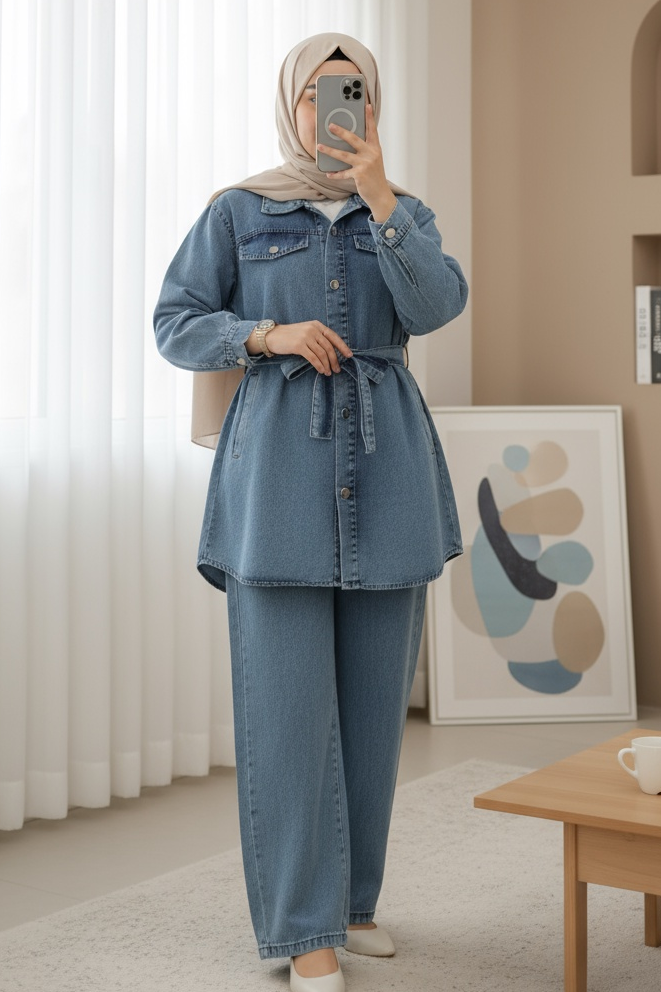 Cepli Beli Kemerli Düğmeli Kot Takım, şıklığı ve rahatlığı bir arada sunan kadın giyim koleksiyonlarının öne çıkan parçalarından biridir. Takım, beli kemerli ve düğmeli tasarımıyla vücuda uyum sağlayarak estetik bir siluet oluşturur. Cepli detaylar ise hem fonksiyonellik hem de modern bir dokunuş sağlar. Kaliteli kot kumaşı, gün boyu konfor sunarken, takımın sağlam ve şık duruşunu korumasını sağlar.