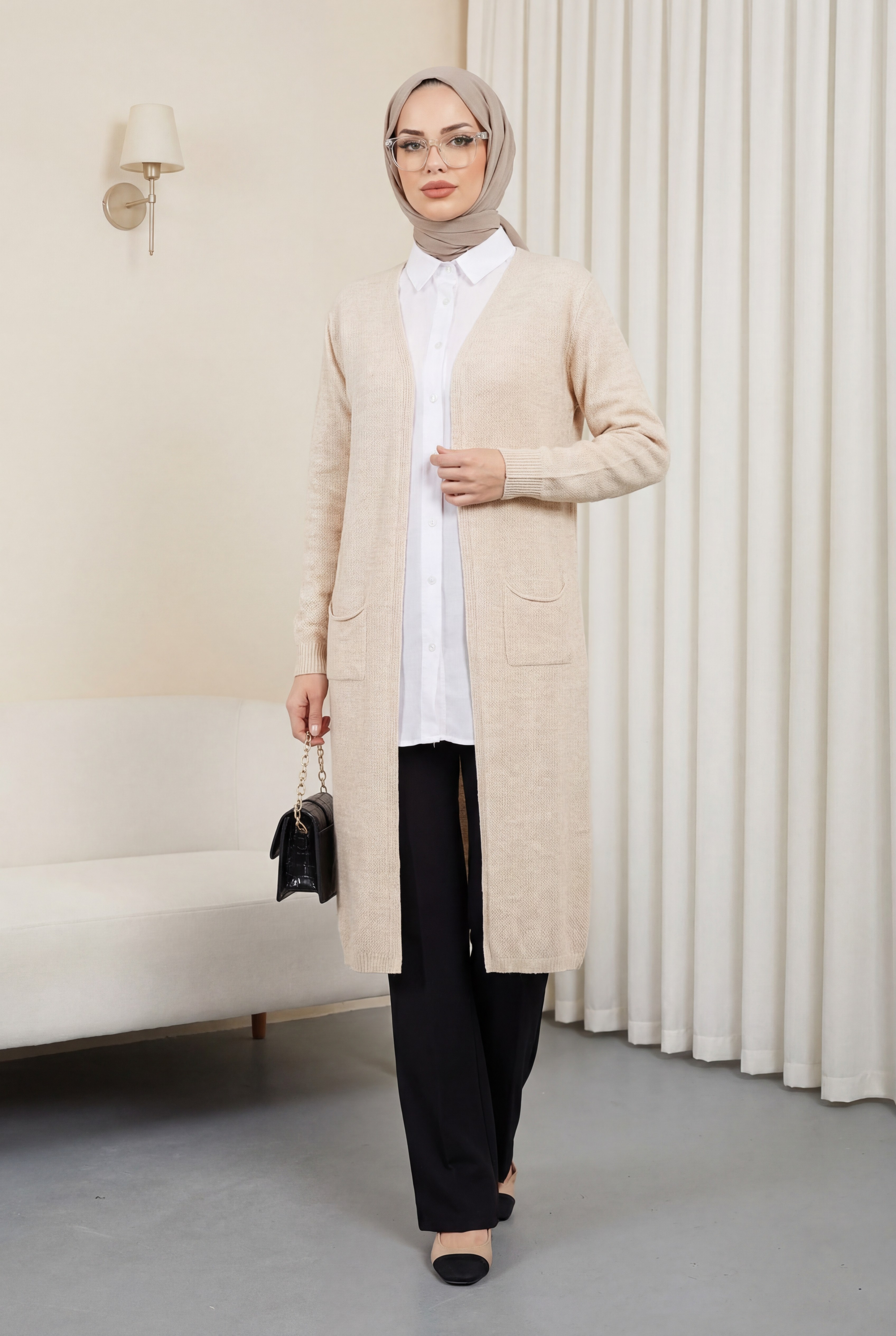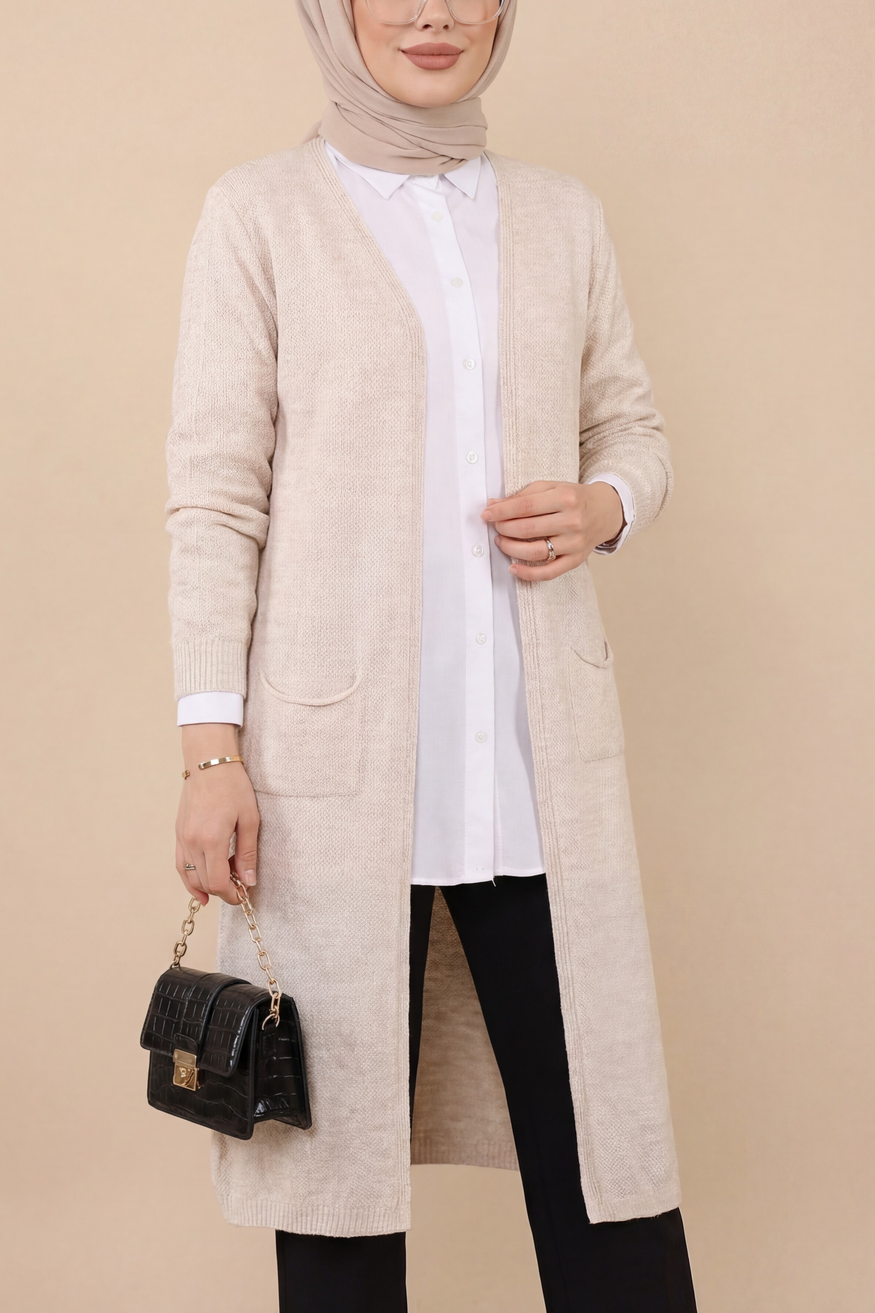 Çift cepli uzun triko hırka modelimiz yeni sezonun en çok sevilen modelleri arasında yer almaktadır.