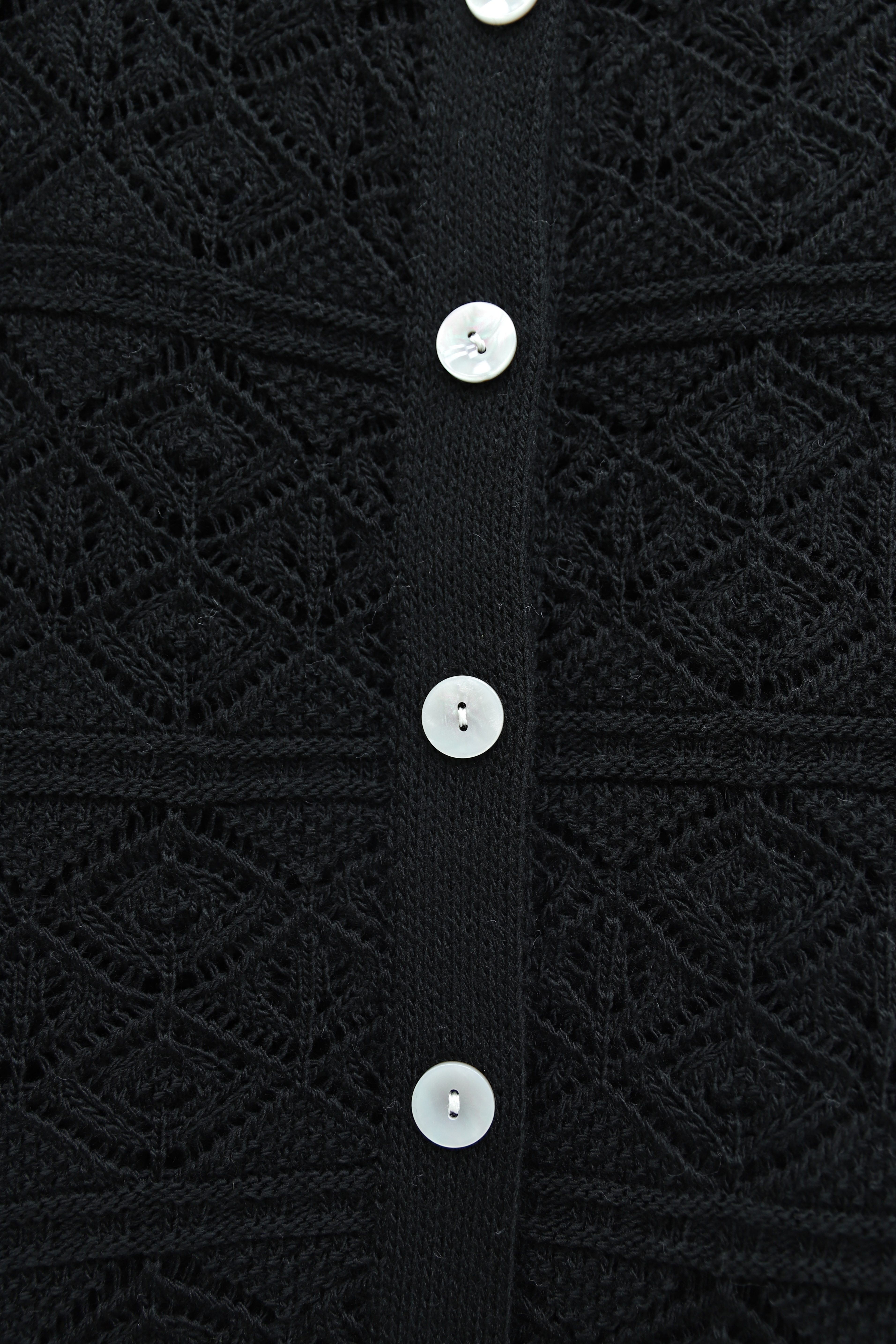 Düğmeli Desenli Ajurlu Triko Hırka, şık ve rahat bir stil sunar. Ajurlu triko dokusu ve desenli yapısı tasarıma hareket katarken, düğmeli formu klasik bir görünüm sağlar. Yumuşak ve konforlu yapısı sayesinde günlük kombinlerde kolayca tercih edilir.