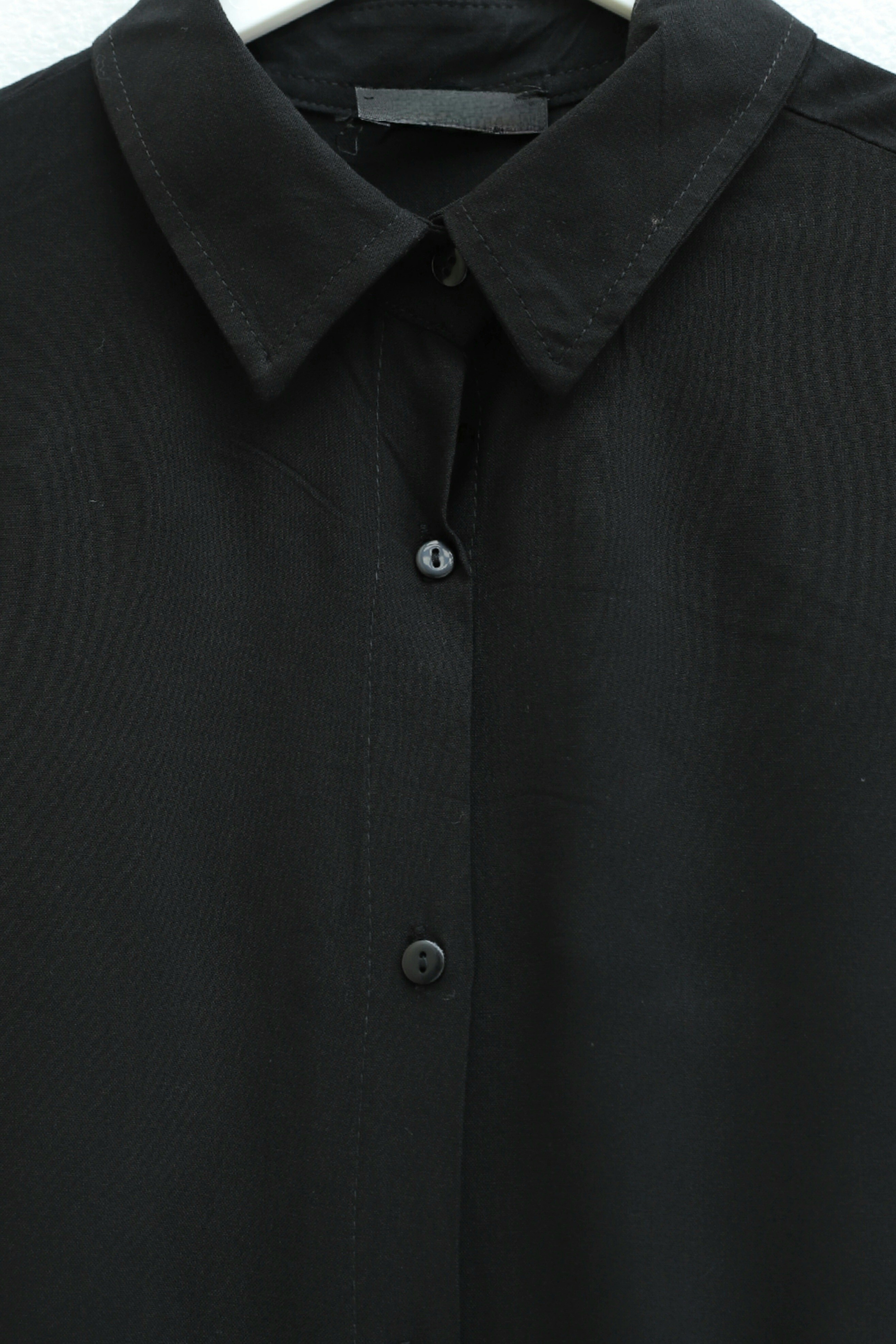 Düğmeli Salaş Viskon Gömlek -Siyah