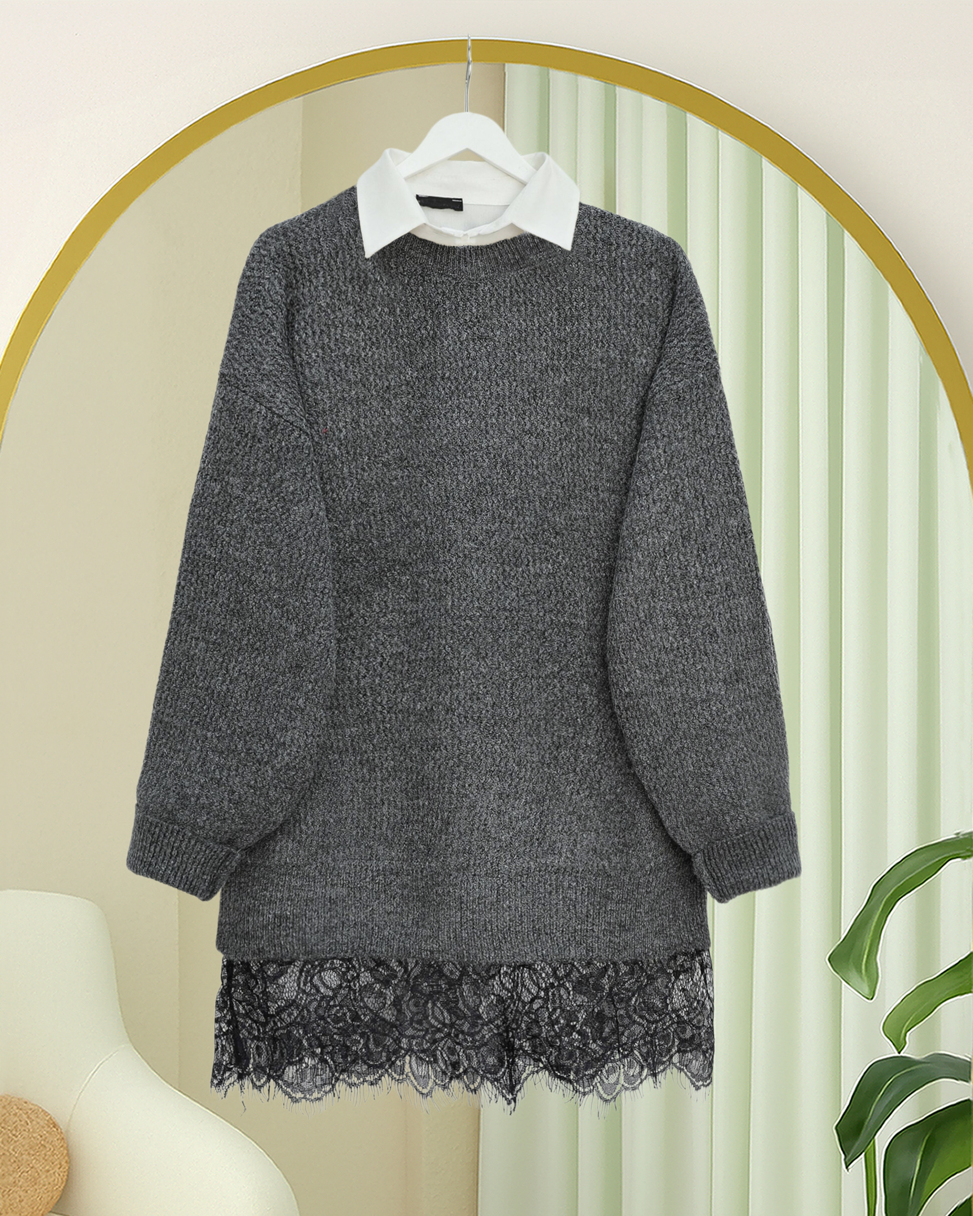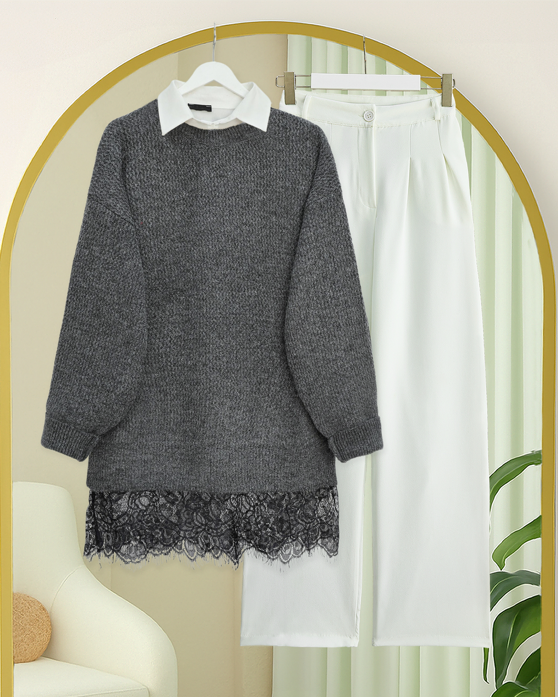 Eteği Dantel Detaylı Triko Kazak, zarif ve feminen bir dokunuşla stilinizi tamamlar. Yumuşak triko kumaşı, rahatlık sağlarken, eteğindeki dantel detayları kazakla modern bir şıklık yaratır. Dantel, zarafeti ve inceliği ön plana çıkarırken, triko yapısı soğuk havalarda sizi sıcak tutar. Hem günlük hem de özel günlerde rahatlıkla tercih edebileceğiniz bu kazak, şıklığı ve konforu bir arada sunar.