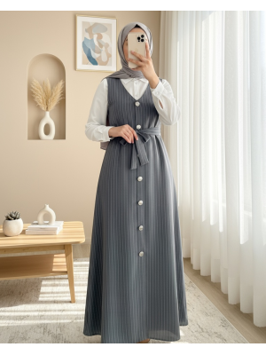 Eteği Fırfırlı Düğmeli Beli Bağcıklı Etekli Takım