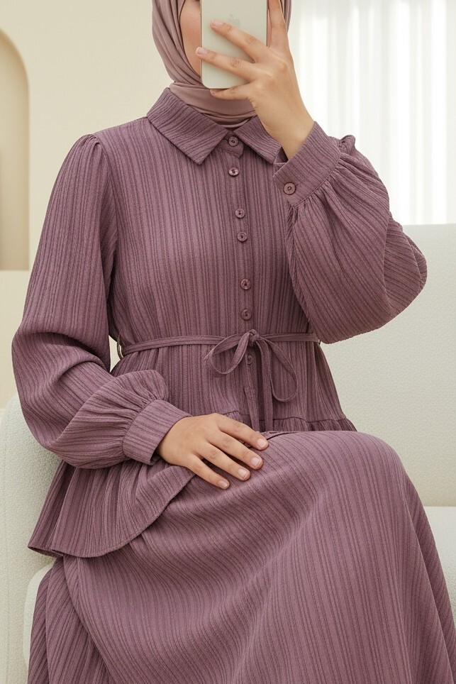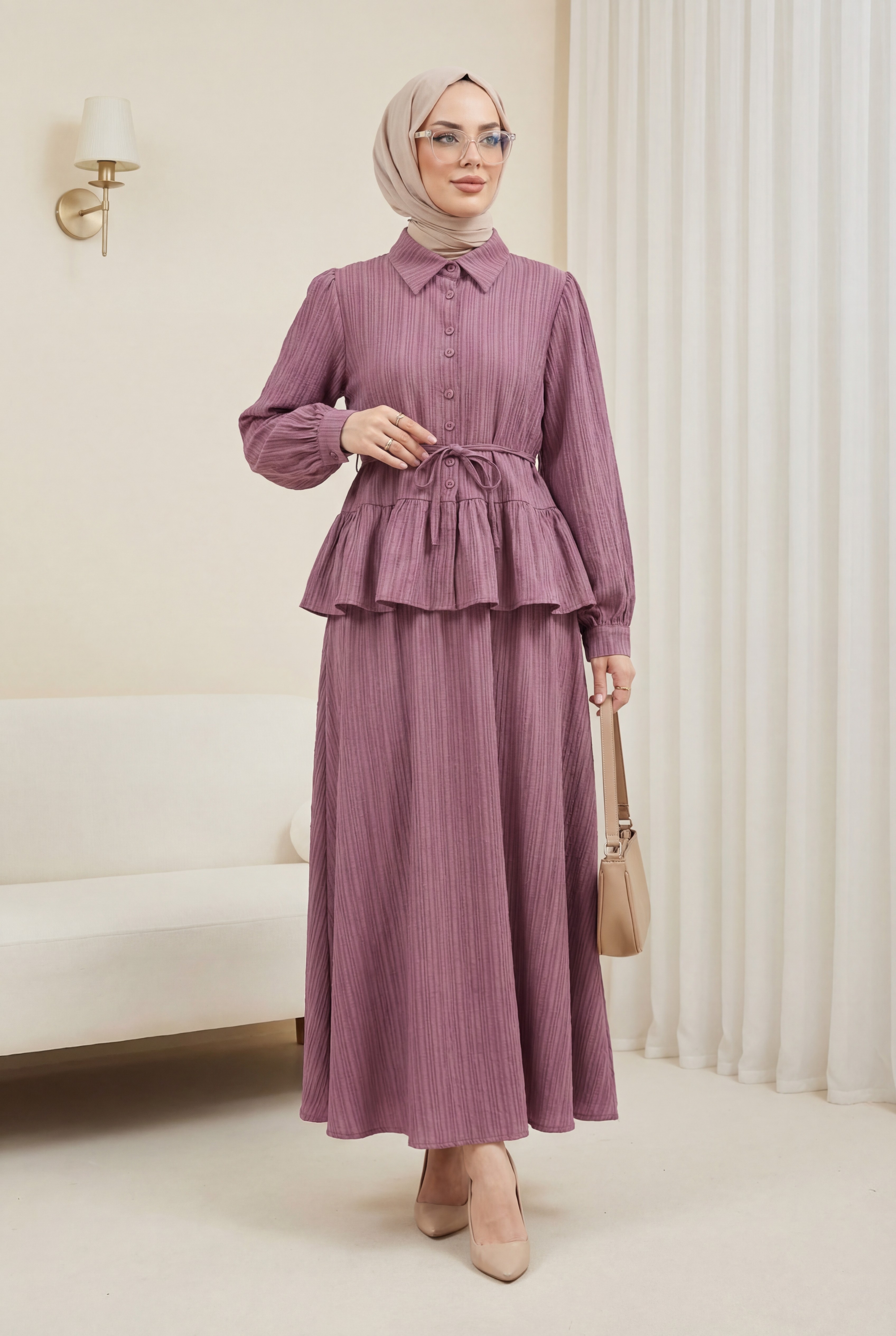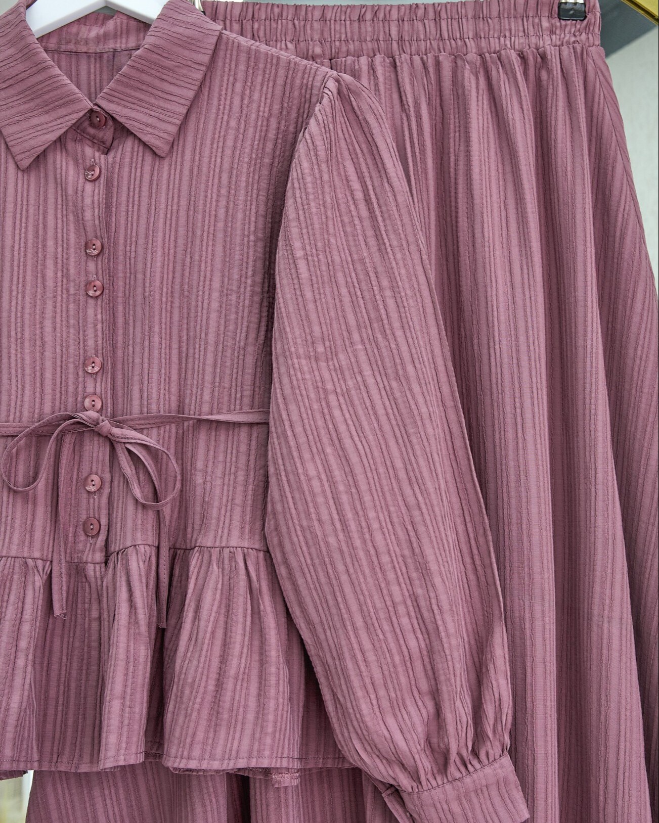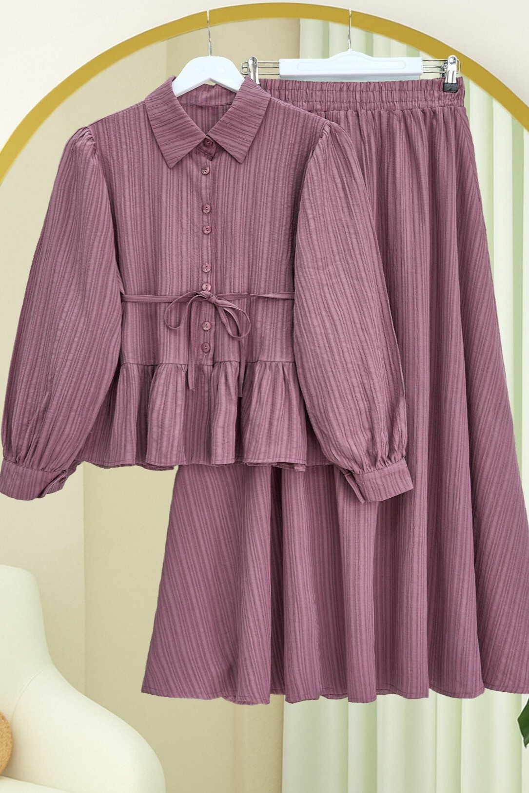 Eteği Fırfırlı Düğmeli Beli Bağcıklı Etekli Takım