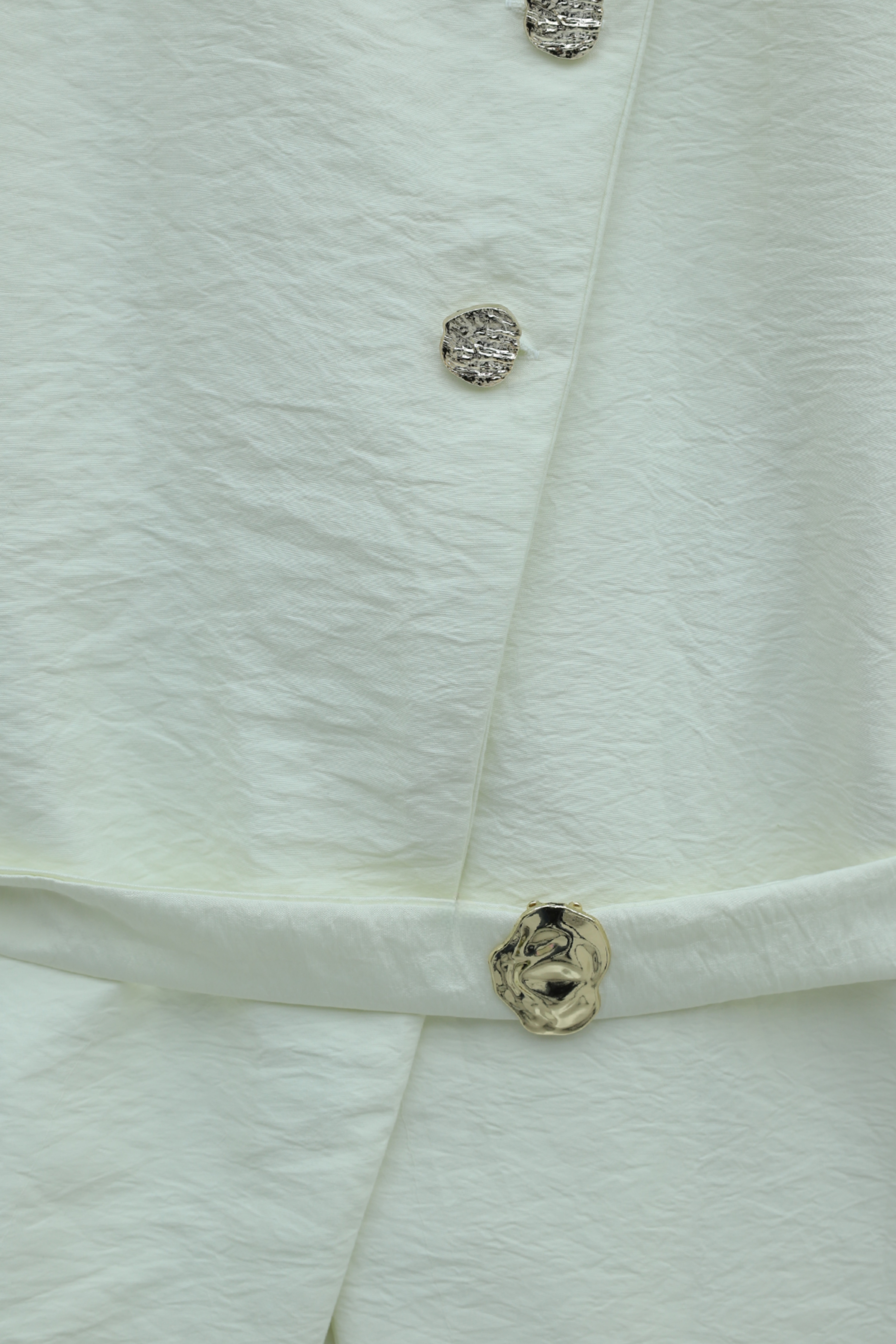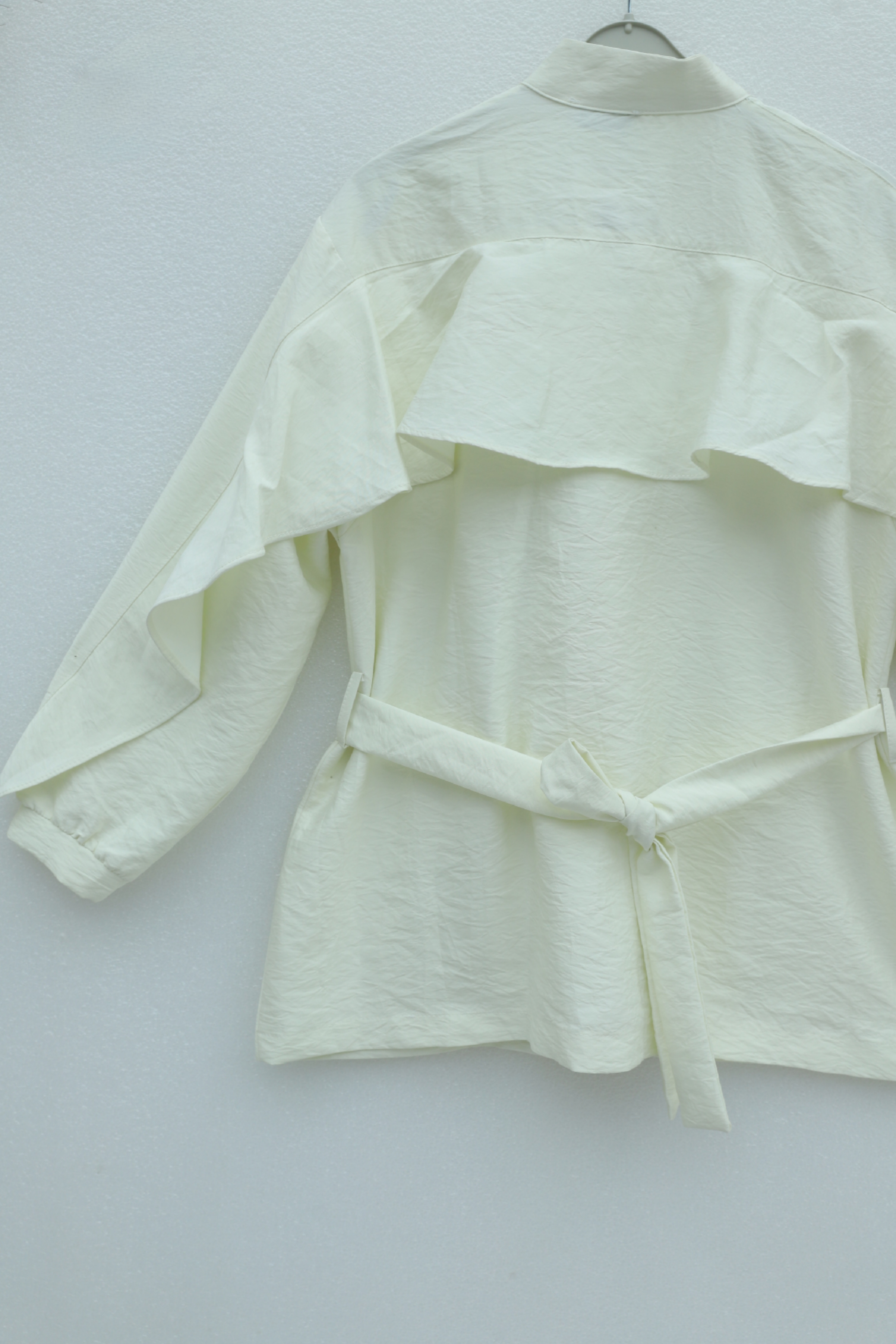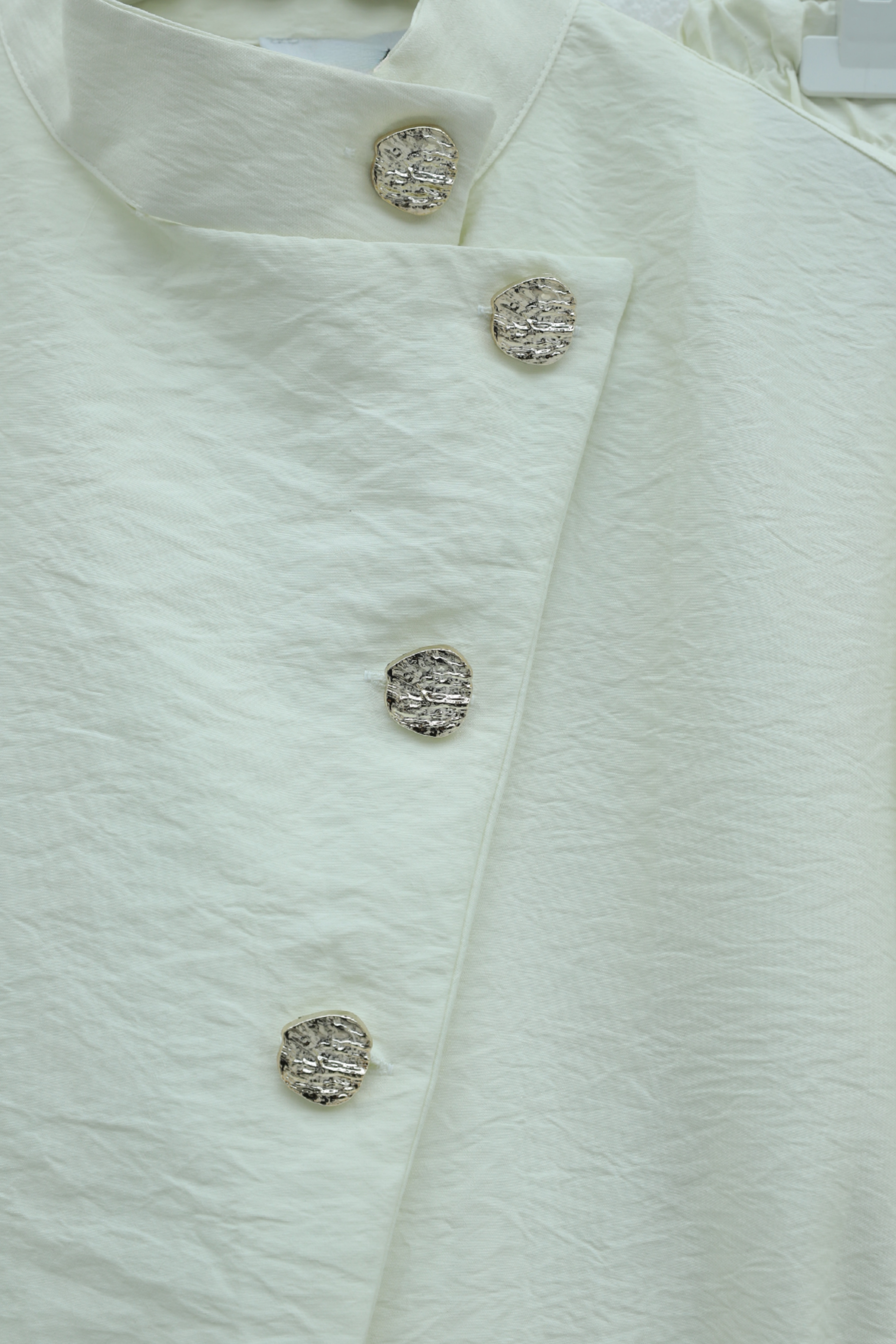 Gold Düğmeli Tokalı Kemerli Fırfır Detaylı Cupra Takım, zarif ve şık bir stil sunar. Gold düğmeler ve tokalı kemer detayı tasarıma dikkat çekici bir dokunuş katarken, fırfır detayları feminen bir görünüm sağlar. Cupra kumaşı akışkan ve rahattır.