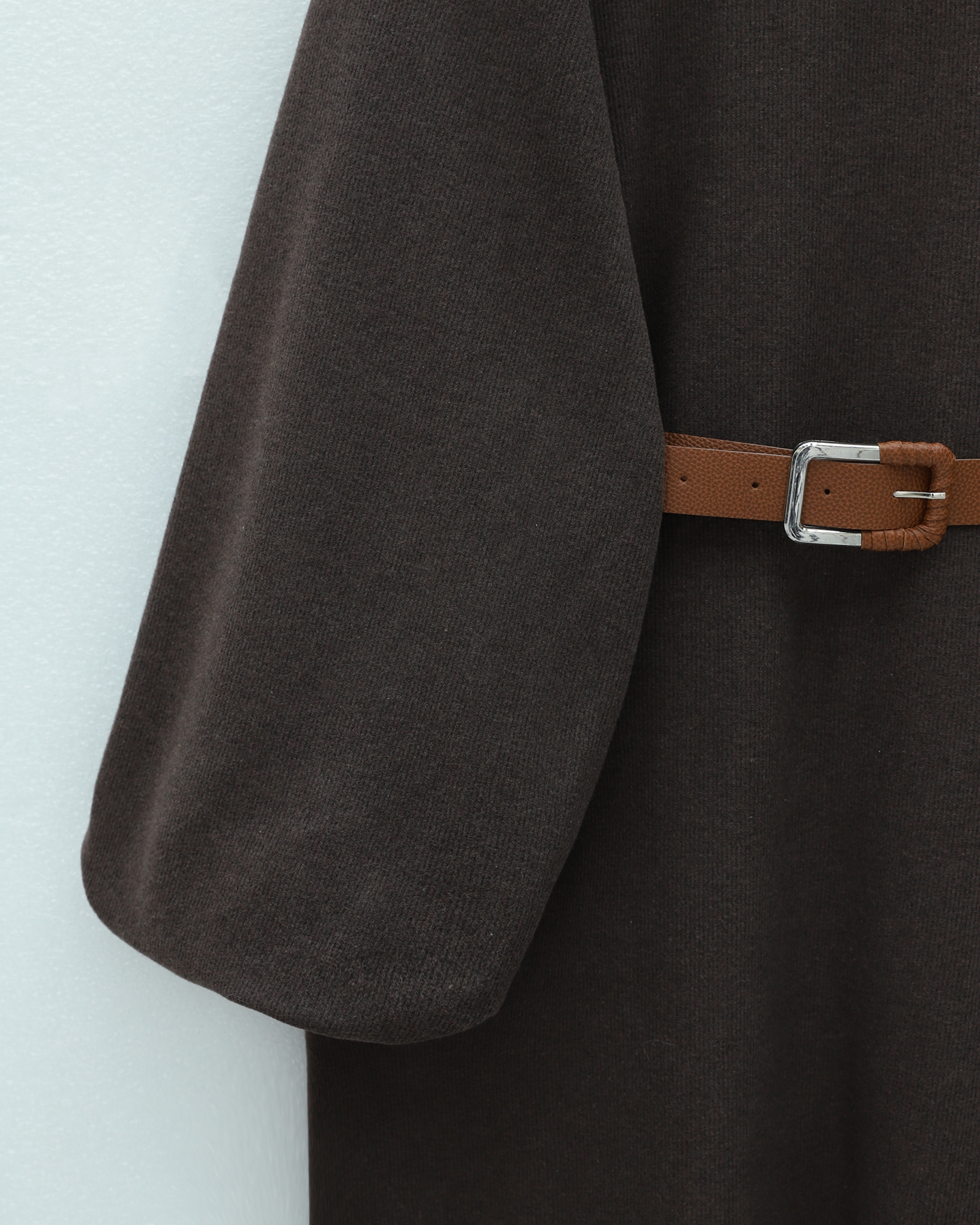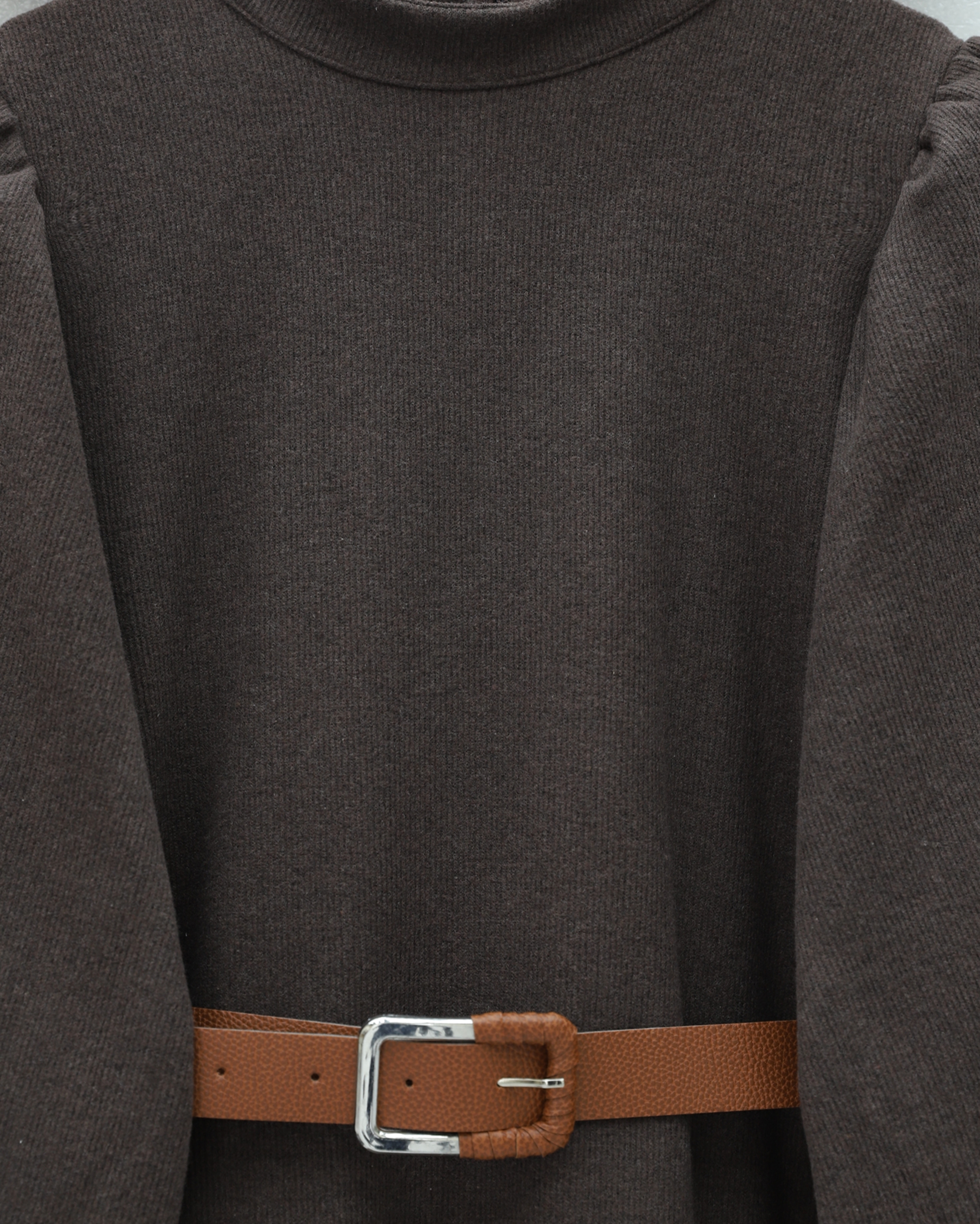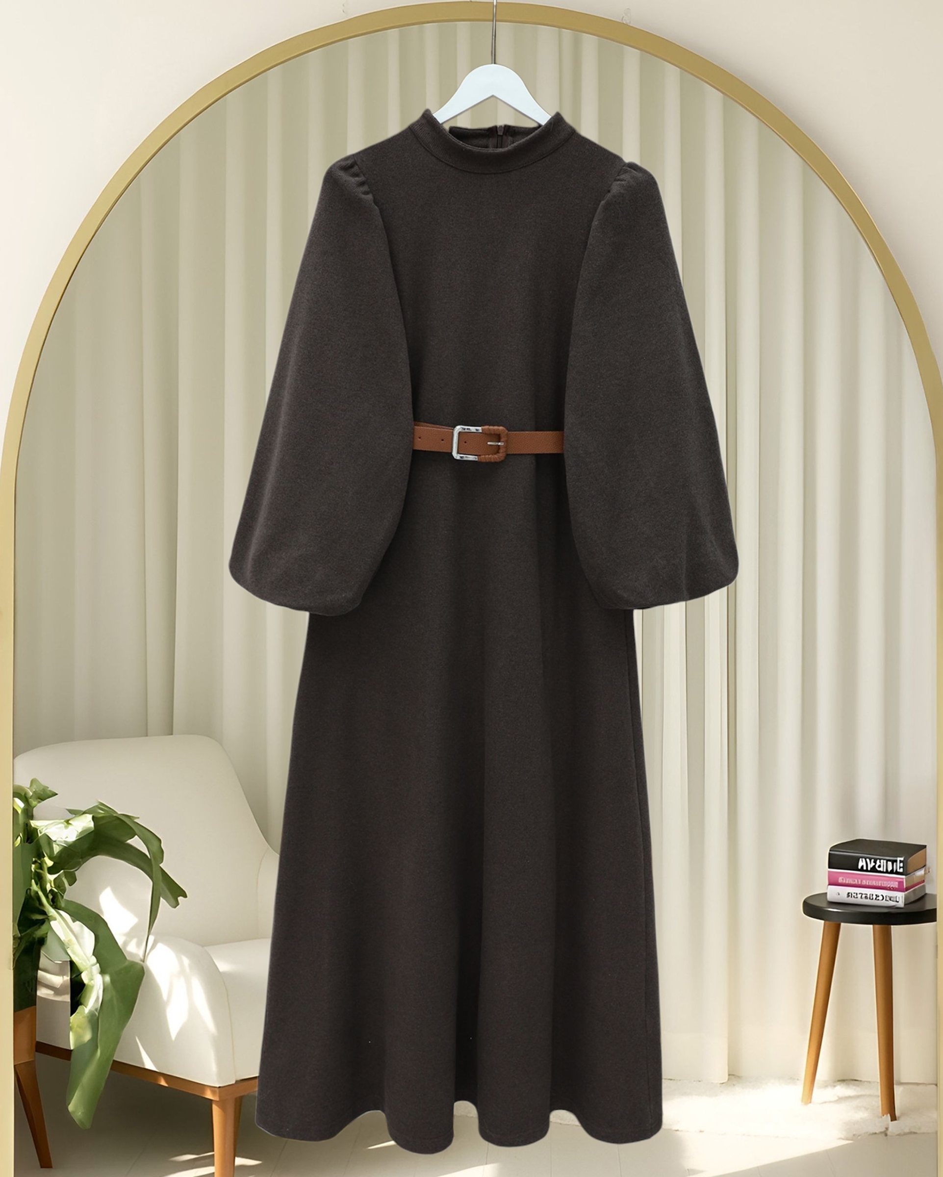 Hem günlük kombinlerde hem de özel günlerde rahatlıkla tercih edilebilen bu model; “selanik örgü elbise”, “balon kol elbise”, “kemerli kışlık elbise” gibi adlandırılabilir.