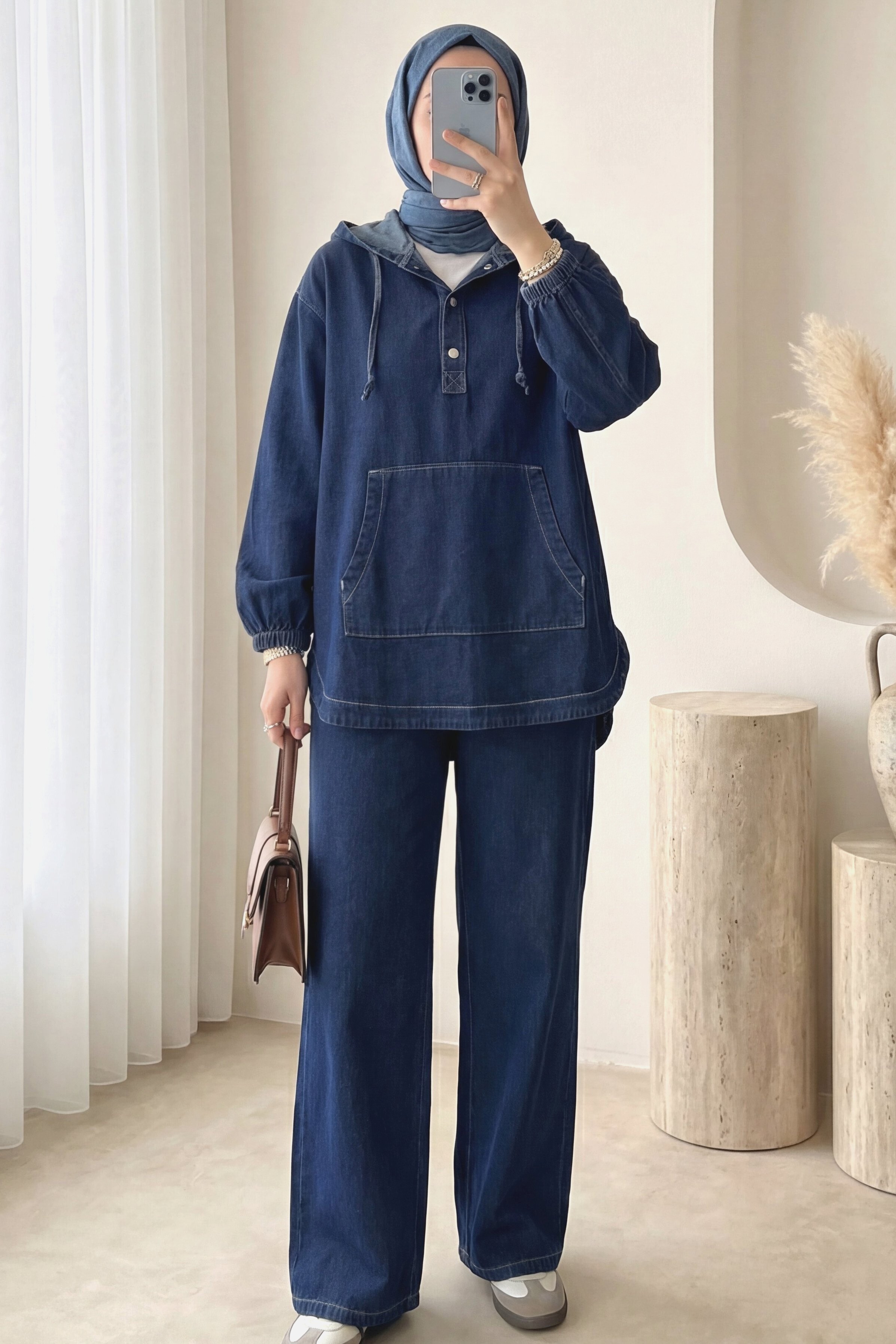 “Kot takım kadın”, “kapşonlu denim takım”, “kanguru cepli kot takım”, “çıtçıtlı kot takım modeli” gibi adlandırılabilir.