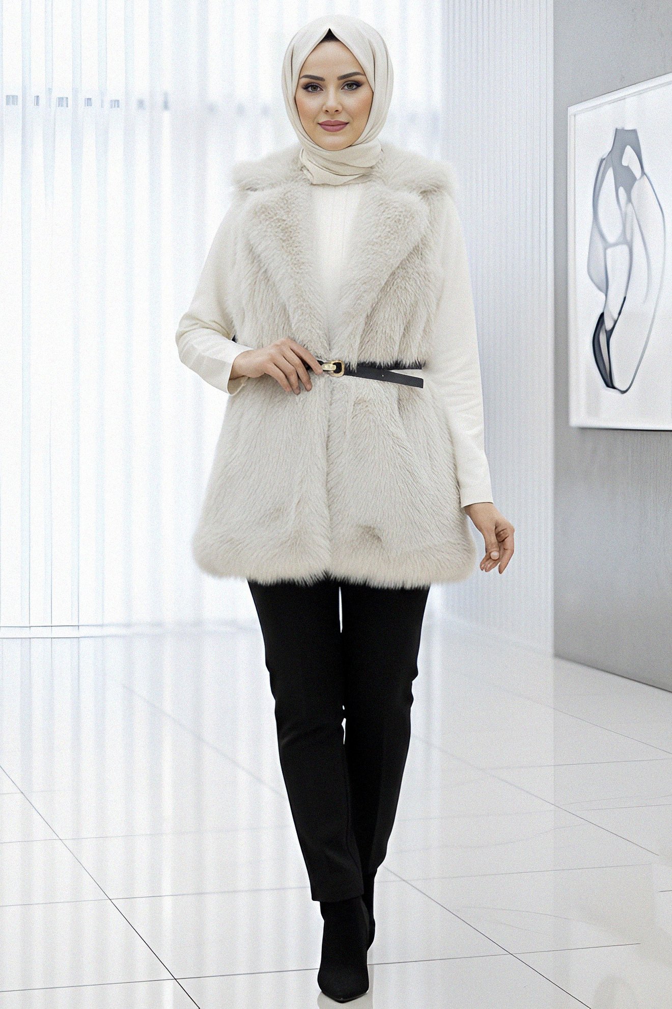 Yeleğin rahat kalıbı, farklı beden tiplerine uyum sağlayarak her kombinle rahatlıkla kullanılabilir. Sezon trendlerine uygun renk seçenekleri ve kürk detayları, casual veya şık kombinlerde fark yaratmanızı sağlar. Kot pantolon, etek veya elbiselerle kombinleyerek hem şehir stilinde hem de hafta sonu rahat şıklığında konforlu ve zarif bir görünüm elde edebilirsiniz.
