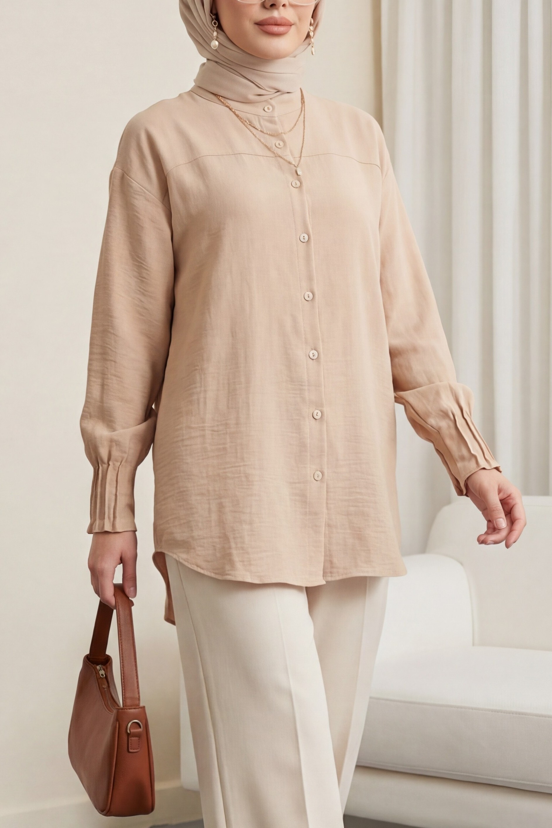 Önden düğmeli, önü kısa arkası uzun, oversize gömlek modelimiz yeni sezonun en çok sevilen modelleri arasında yer almaktadır.