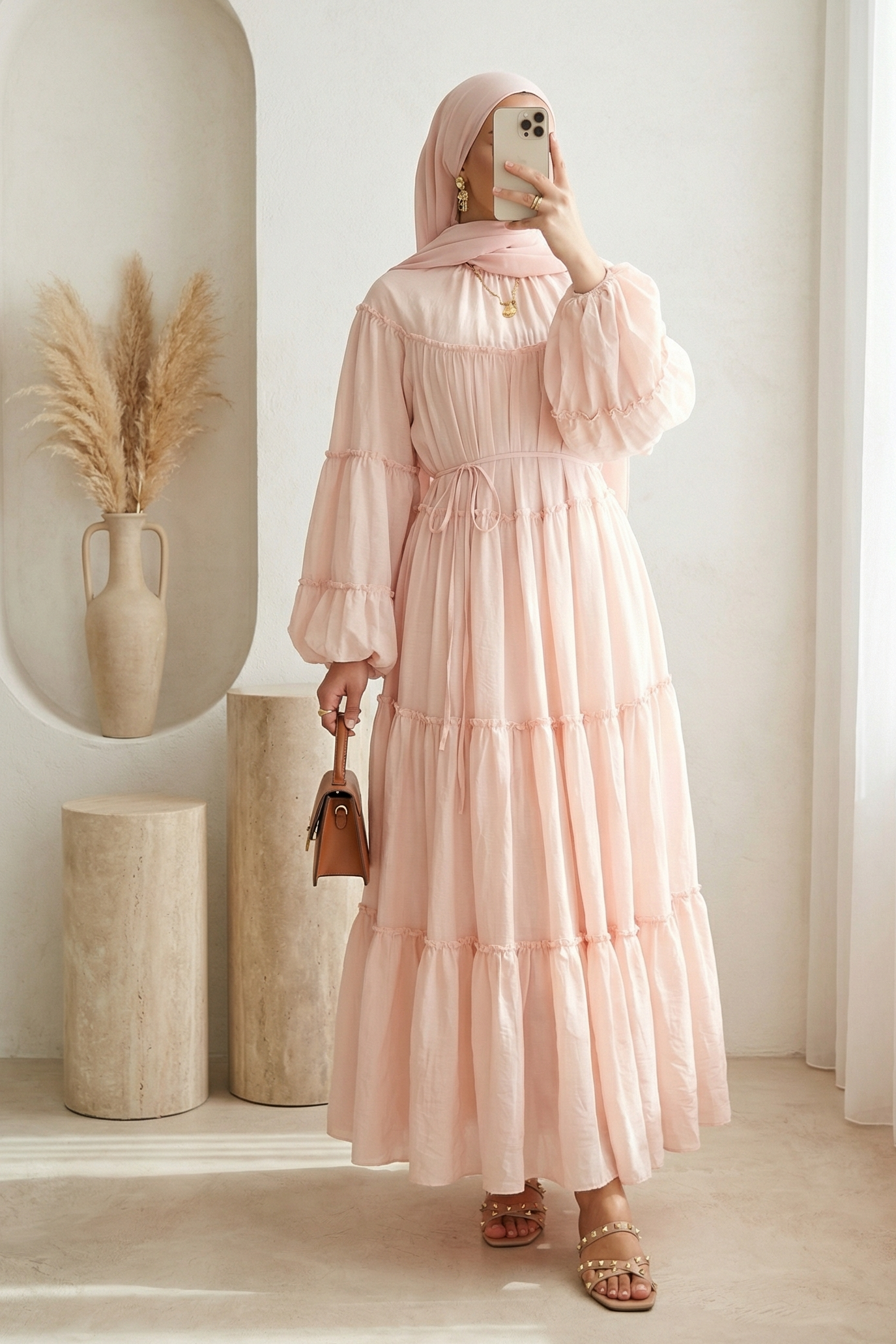 Feminen detayları ve akıcı tasarımıyla öne çıkan Kolu Lastikli Beli Bağlamalı Katlı Fırfır Detaylı Elbise, günlük şıklığı zahmetsizce yakalamak isteyen kadınlar için ideal bir parça. Kol lastikleri sayesinde rahat bir kullanım sunarken, beli bağlamalı yapısı vücut hatlarını zarifçe vurgular. Katlı fırfır detayları elbiseye hareket ve romantik bir hava katarak hem gündüz hem de özel anlarda şık bir görünüm sağlar. Hafif ve dökümlü kumaşıyla gün boyu konfor sunar.