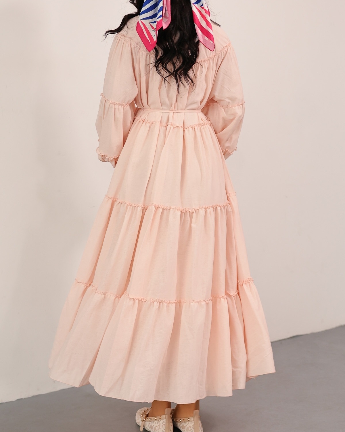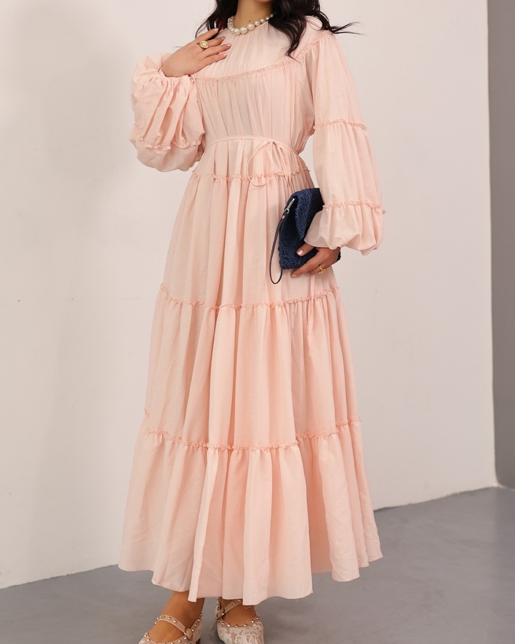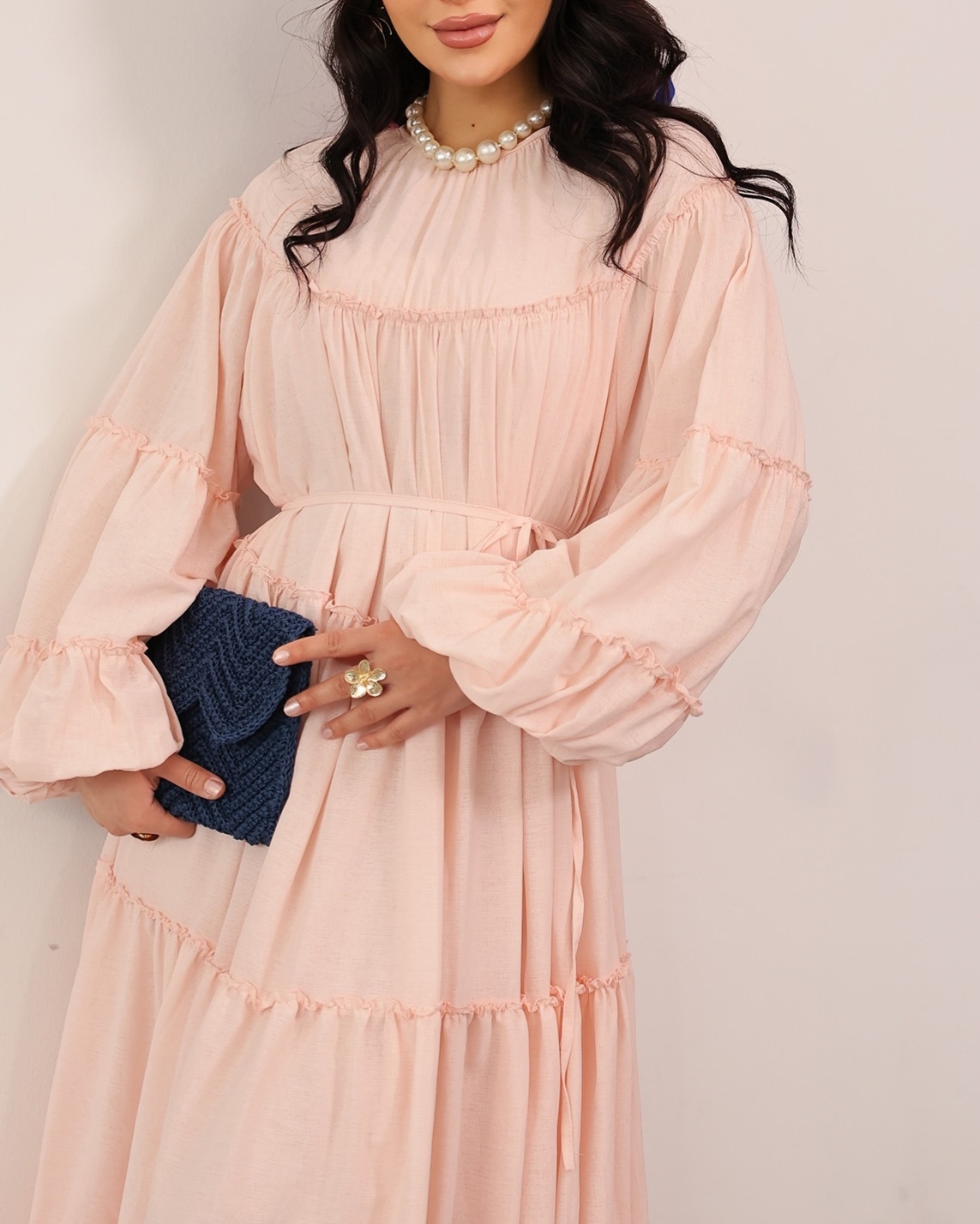 “Beli bağlamalı elbise”, “katlı fırfırlı elbise”, “kolu lastikli kadın elbise”, “günlük şık elbise” gibi adlandırılabilir.