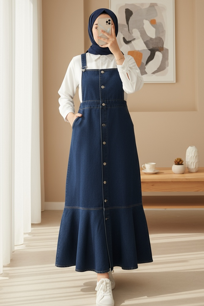 Eteği fırfırlı, önü düğme detaylı, cepli kot jile modelimiz yeni sezonun en çok sevilen modelleri arasında yer almaktadır.