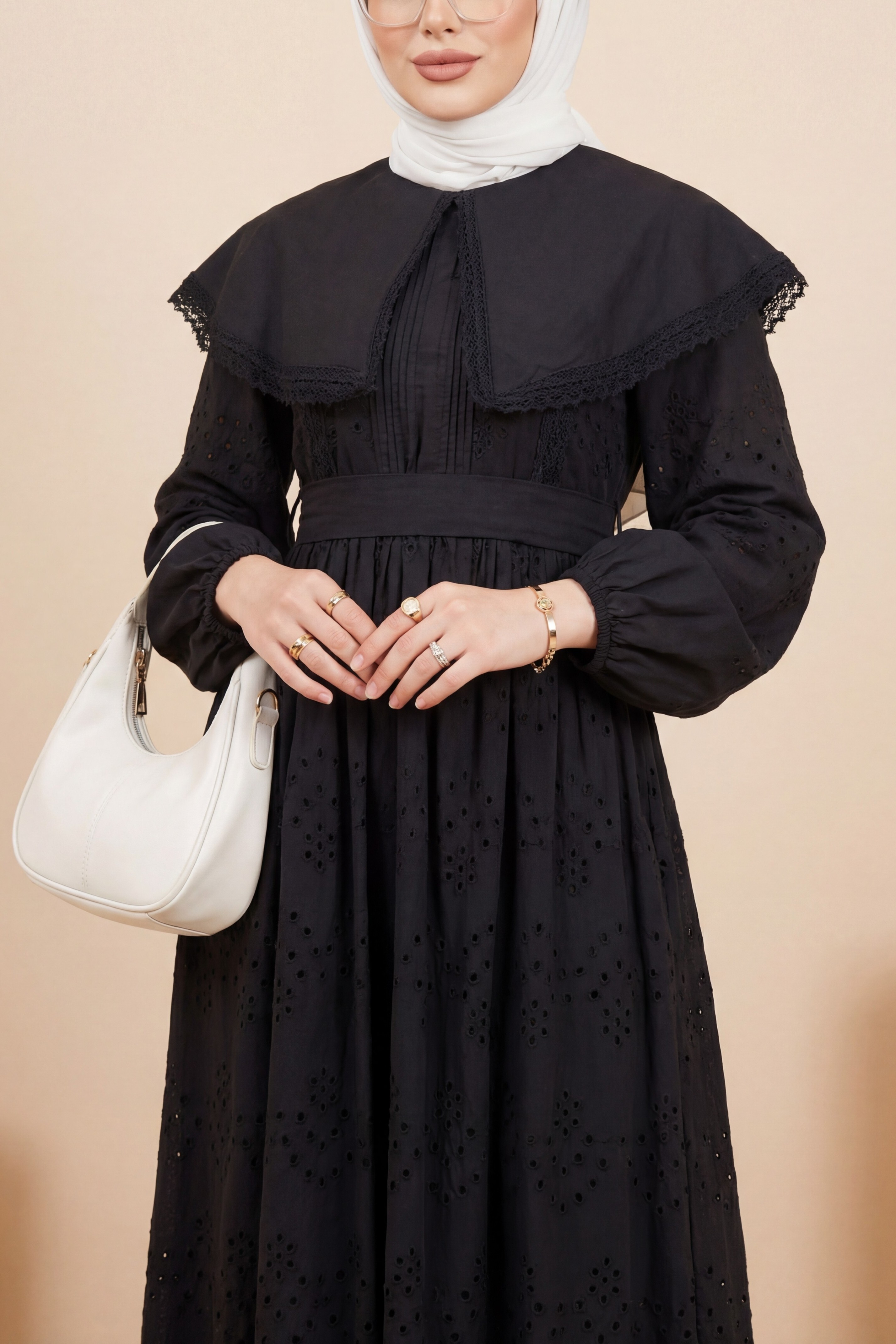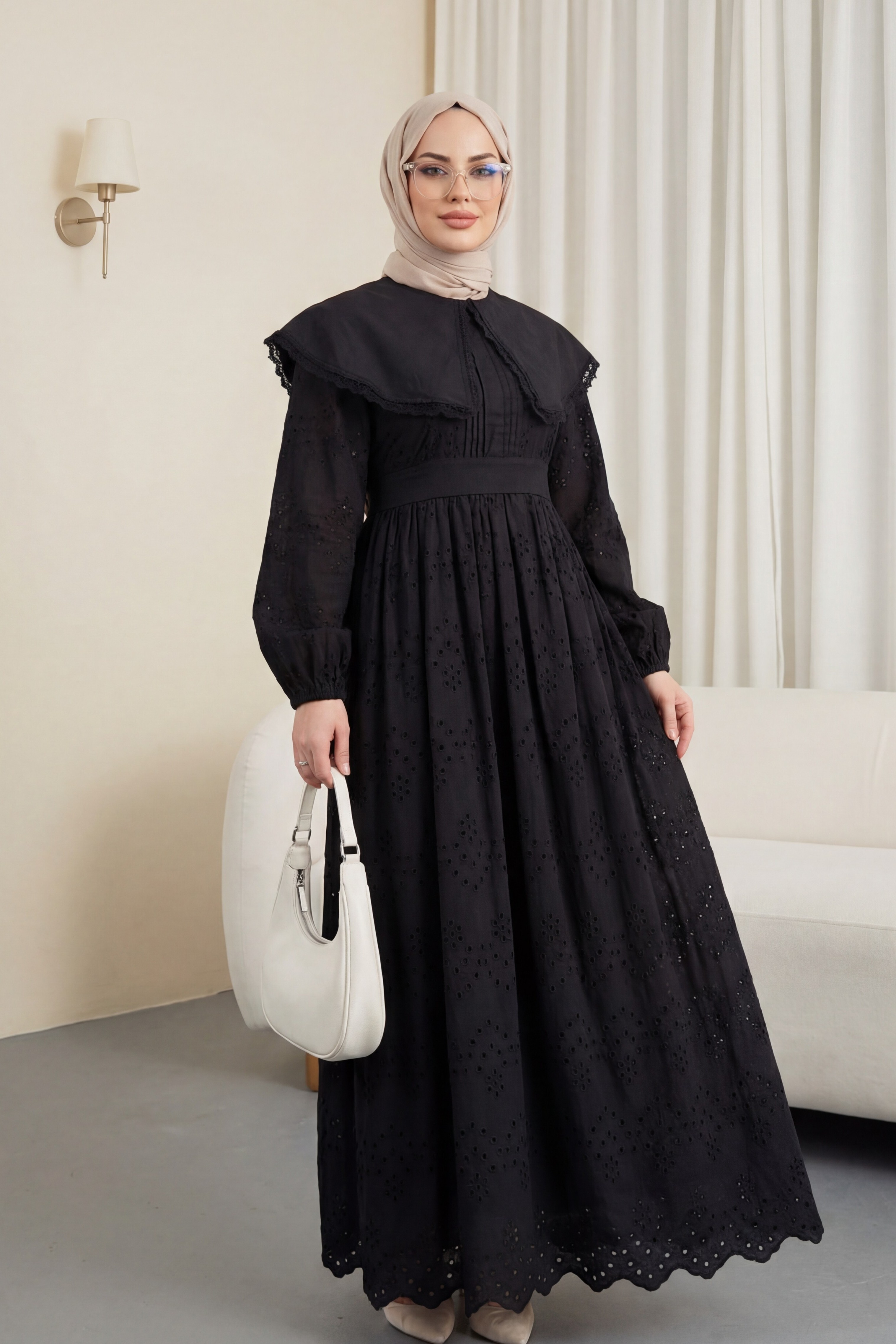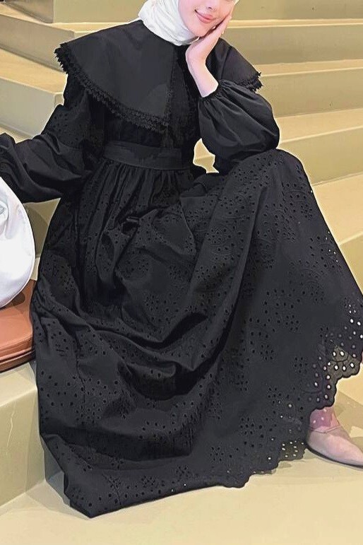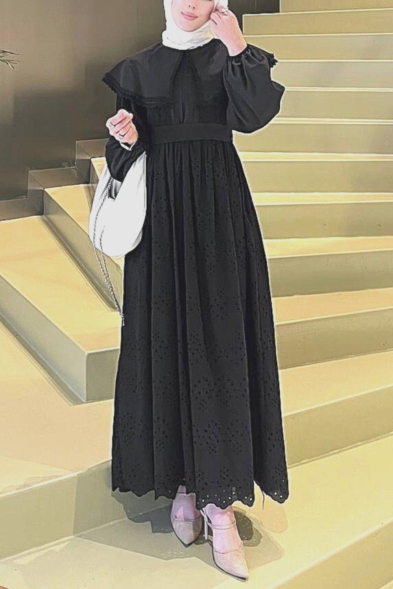Pelerin Yaka Dantel Detaylı Elbise ile zarif ve şık bir görünüm elde edin. Pelerin yaka tasarımı ve dantel detayları, elbiseye feminen ve zarif bir hava katar. Hem özel günlerde hem de şık davetlerde tercih edilebilecek mükemmel bir seçenek.