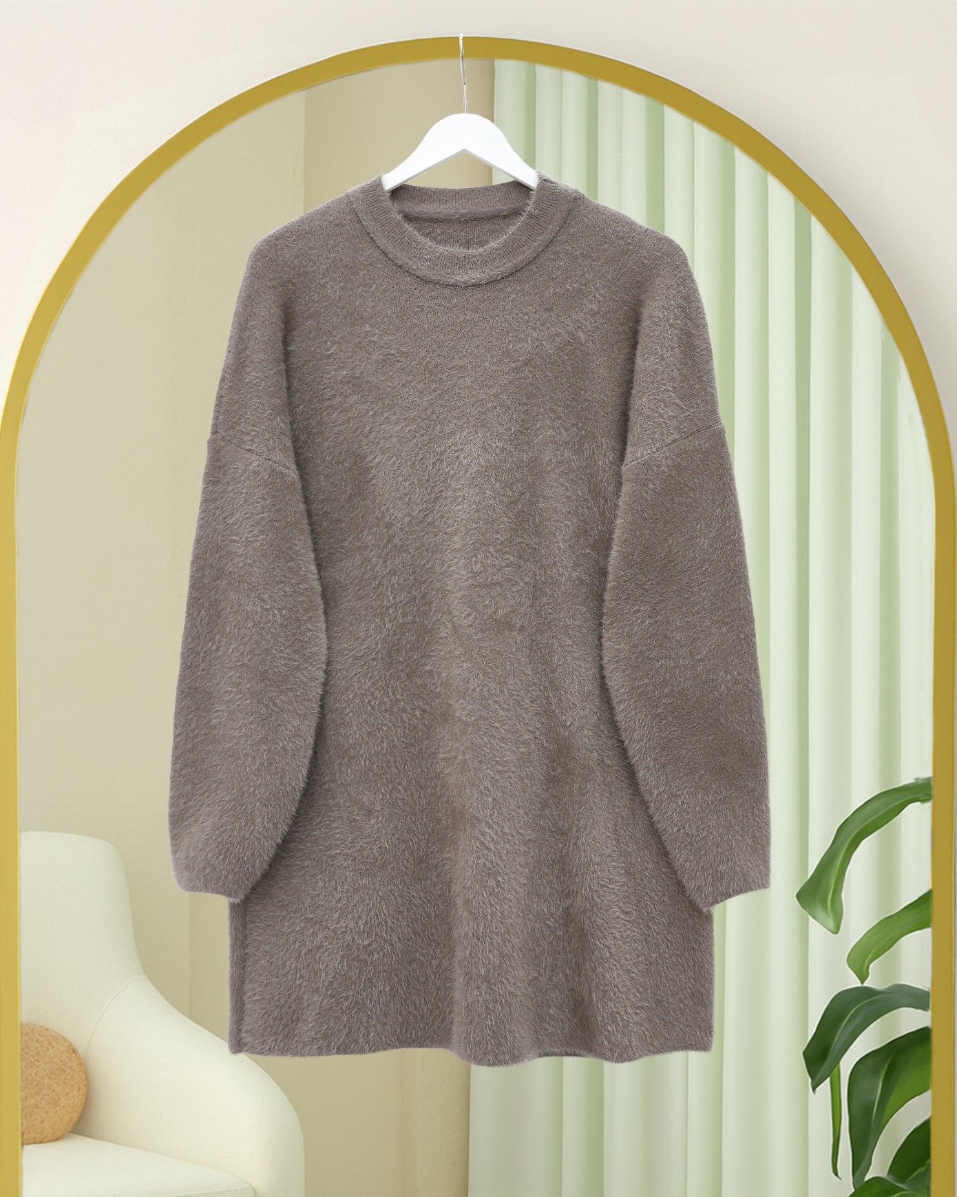 Sakallı Uzun Salaş Triko Tunik -Toprak - 295-4529-R55