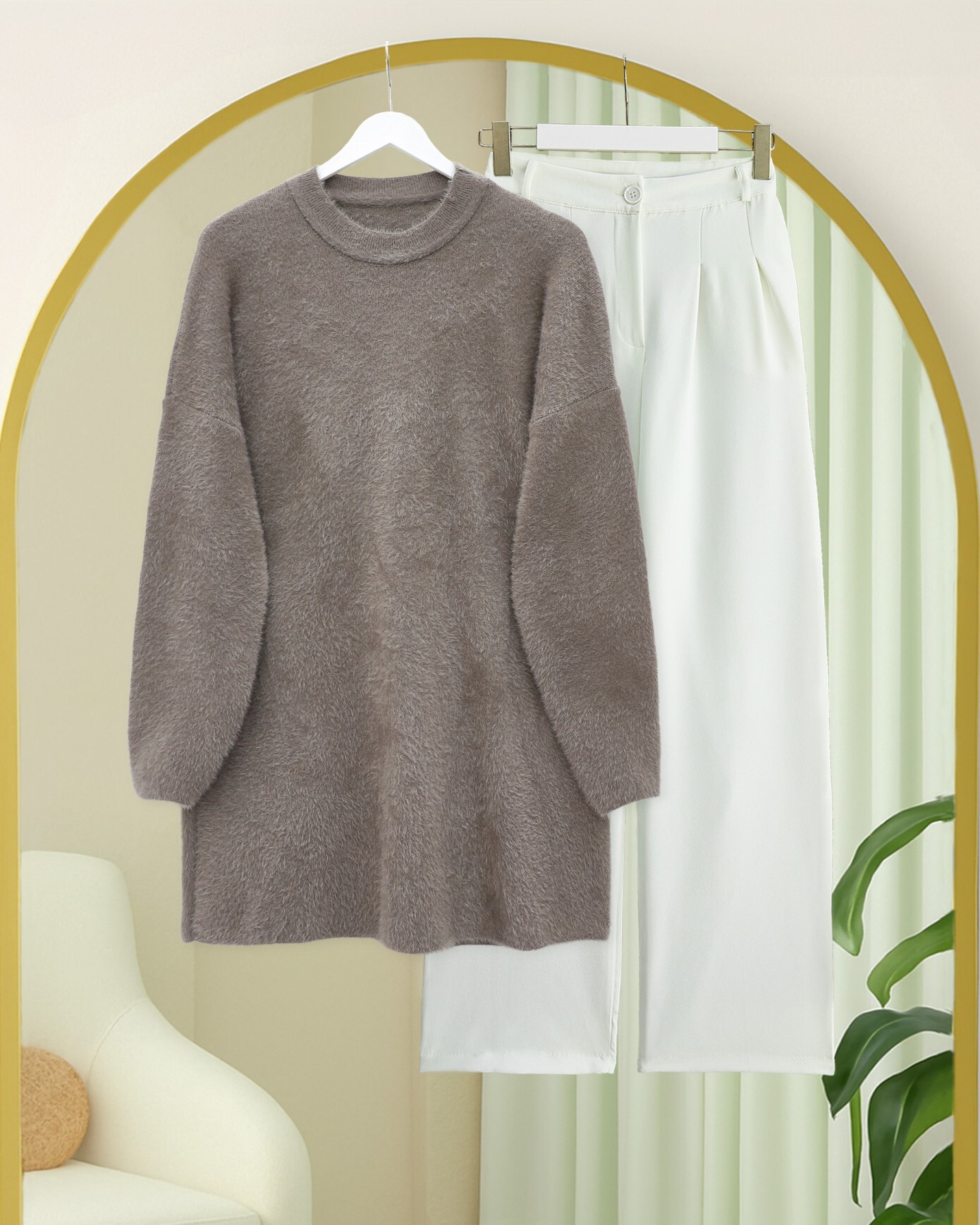 Not: Ürün içeriği tunikten oluşmaktadır. (Ayakkabı, pantolon, çanta ve takılar dekor amaçlı kullanılmaktadır.)