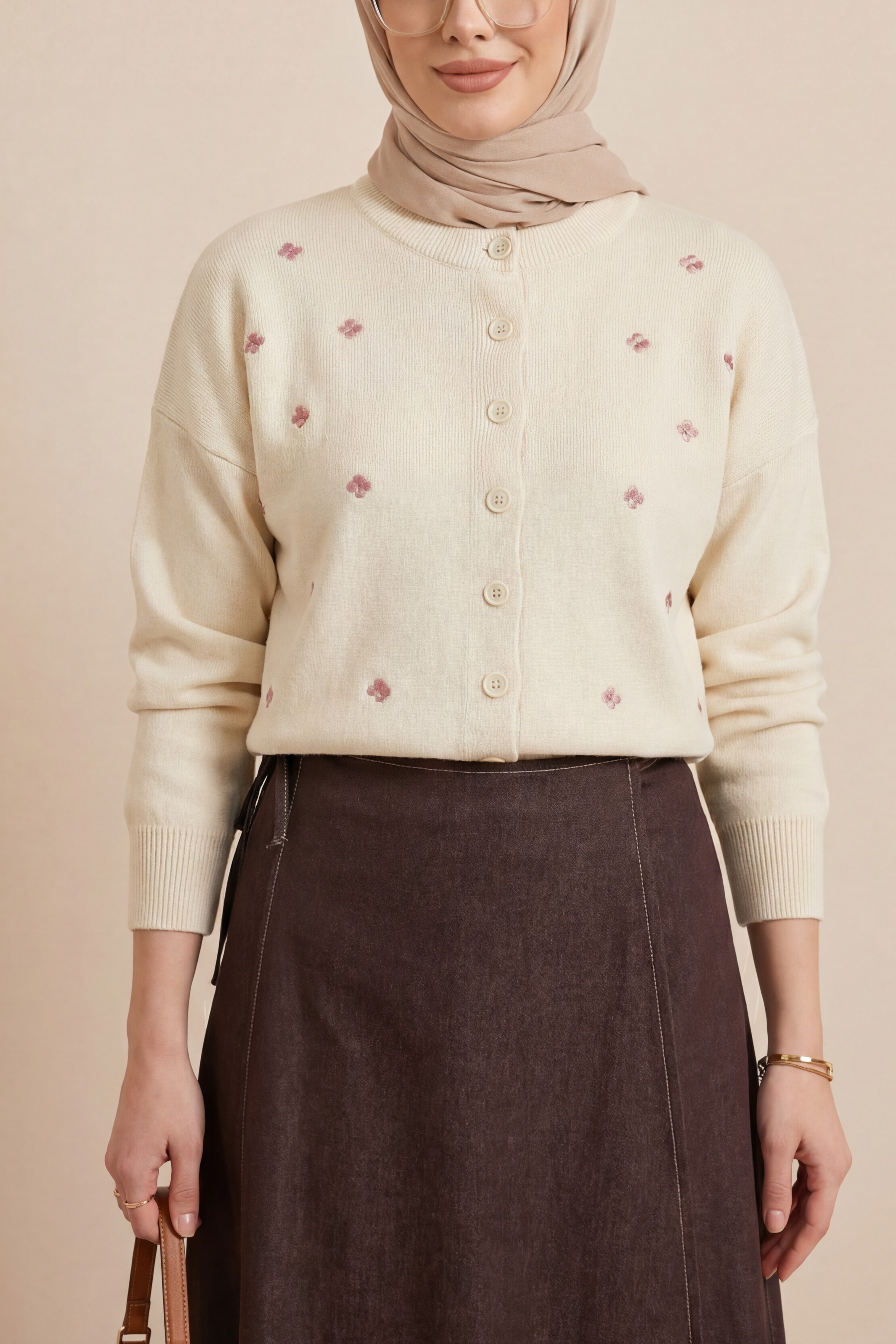 “Çiçek nakışlı triko hırka”, “oversize kadın hırka”, “düğmeli triko hırka modeli”, “romantik triko hırka” gibi adlandırılabilir.