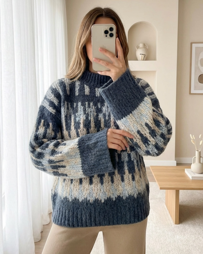Sıcak dokusu ve modern tasarımıyla öne çıkan Üç Renkli Desenli Kalın Triko Kazak, kış kombinlerinin vazgeçilmez parçalarından biridir. Kalın triko kumaşı sayesinde soğuk havalarda ideal bir kullanım sunarken, üç renkli desen geçişleri kazak modeline hareketli ve stil sahibi bir görünüm kazandırır. Yumuşak dokusu gün boyu konfor sağlarken, salaş kalıbı farklı vücut tiplerine uyumlu bir duruş sergiler.