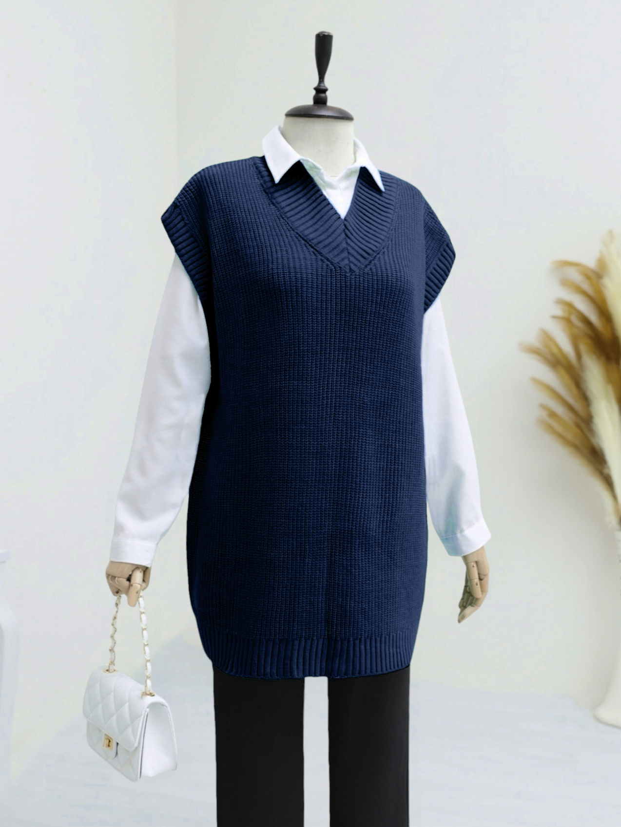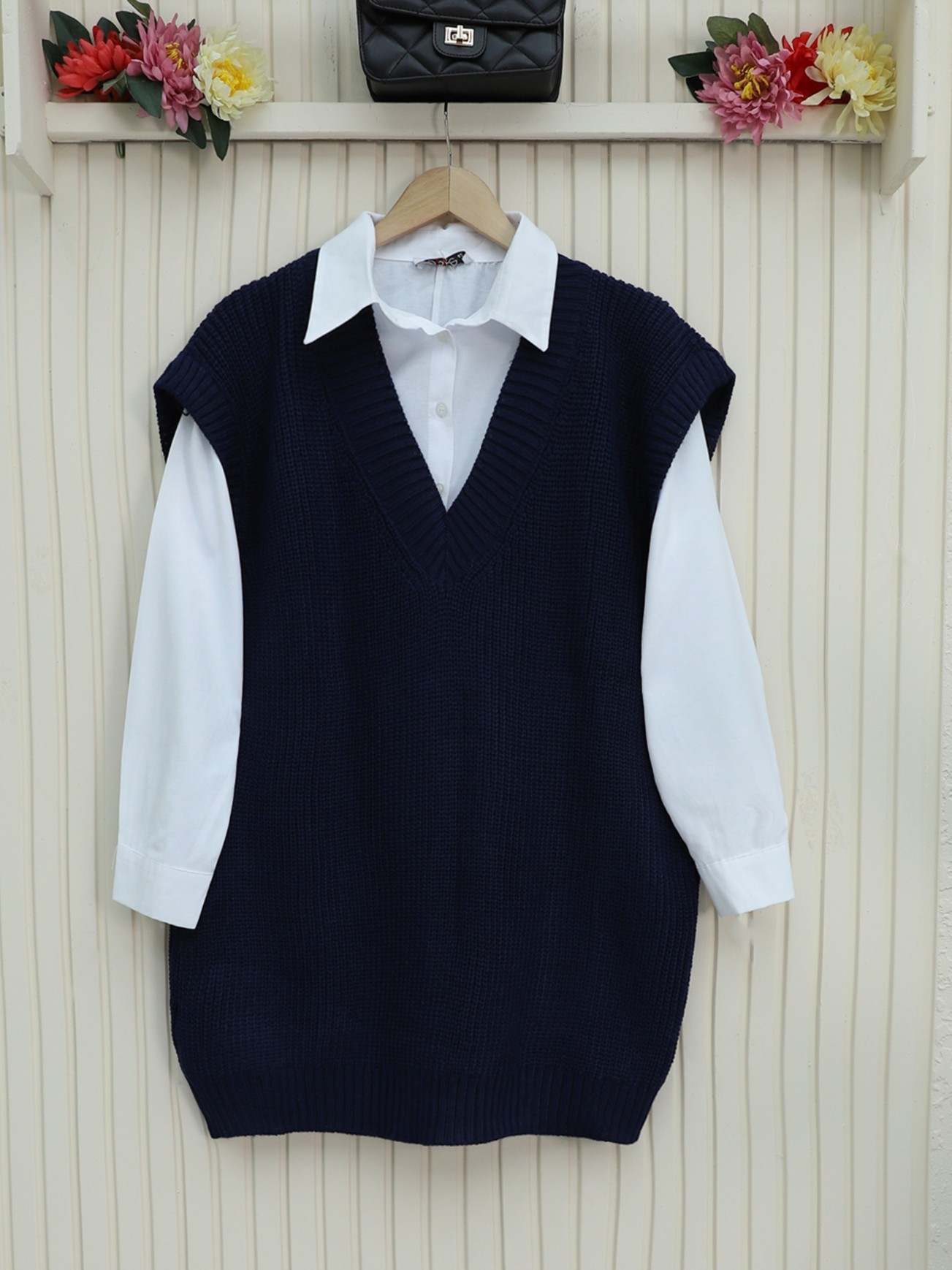 Not: Ürün içeriği süveterden oluşmaktadır. (Pantolon, gömlek, çanta ve takılar dekor amaçlı kullanılmaktadır.)