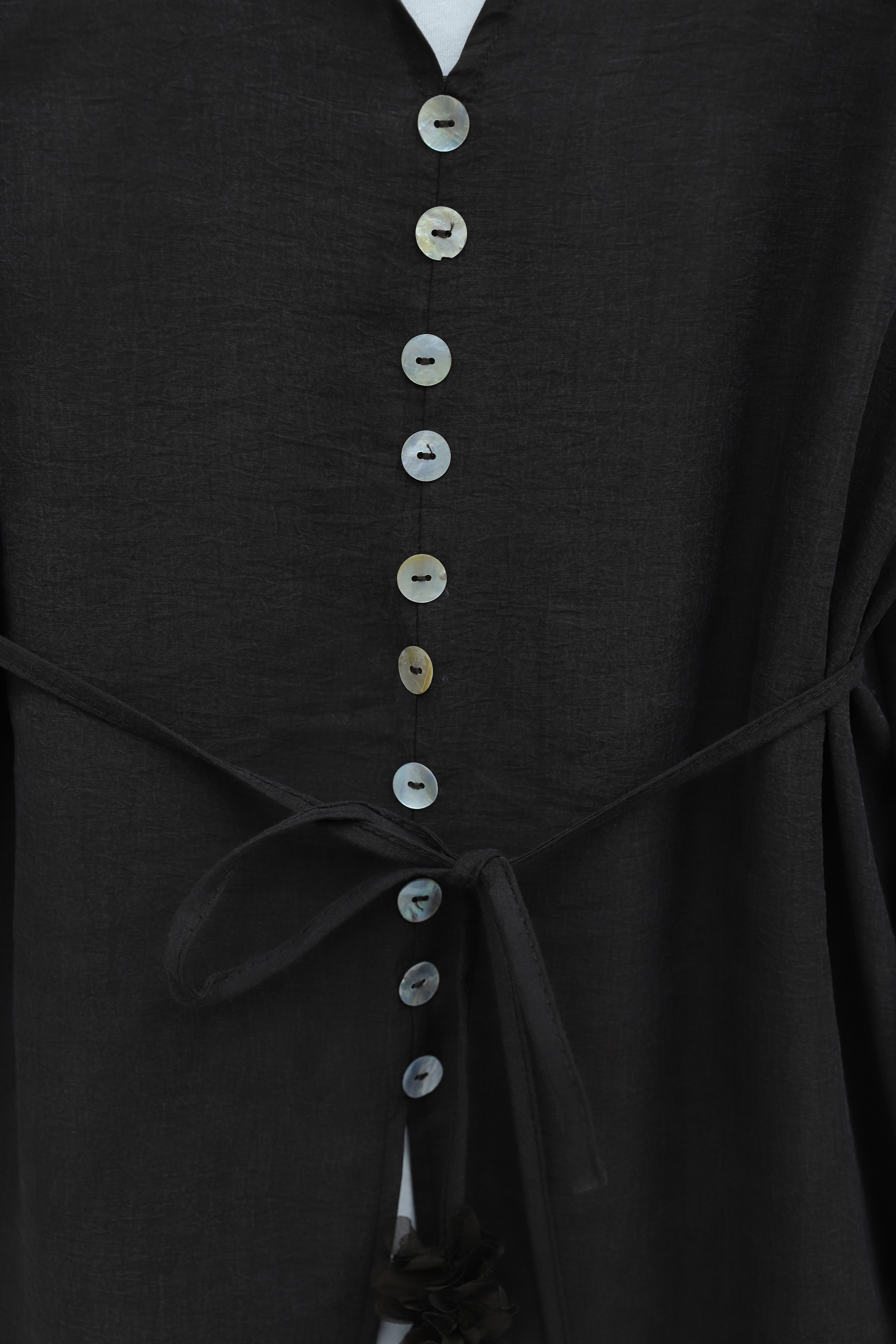 V Yaka Kolu Çiçekli Düğmeli Bağcıklı Modal Gömlek, zarif ve feminen bir stil sunar. V yaka ve düğmeli tasarımı sade bir şıklık sağlarken, kol kısmındaki çiçek detayları tasarıma romantik bir dokunuş katar. Bağcıklı formu silueti zarif şekilde vurgular. Modal kumaşı yumuşak ve nefes alabilendir.