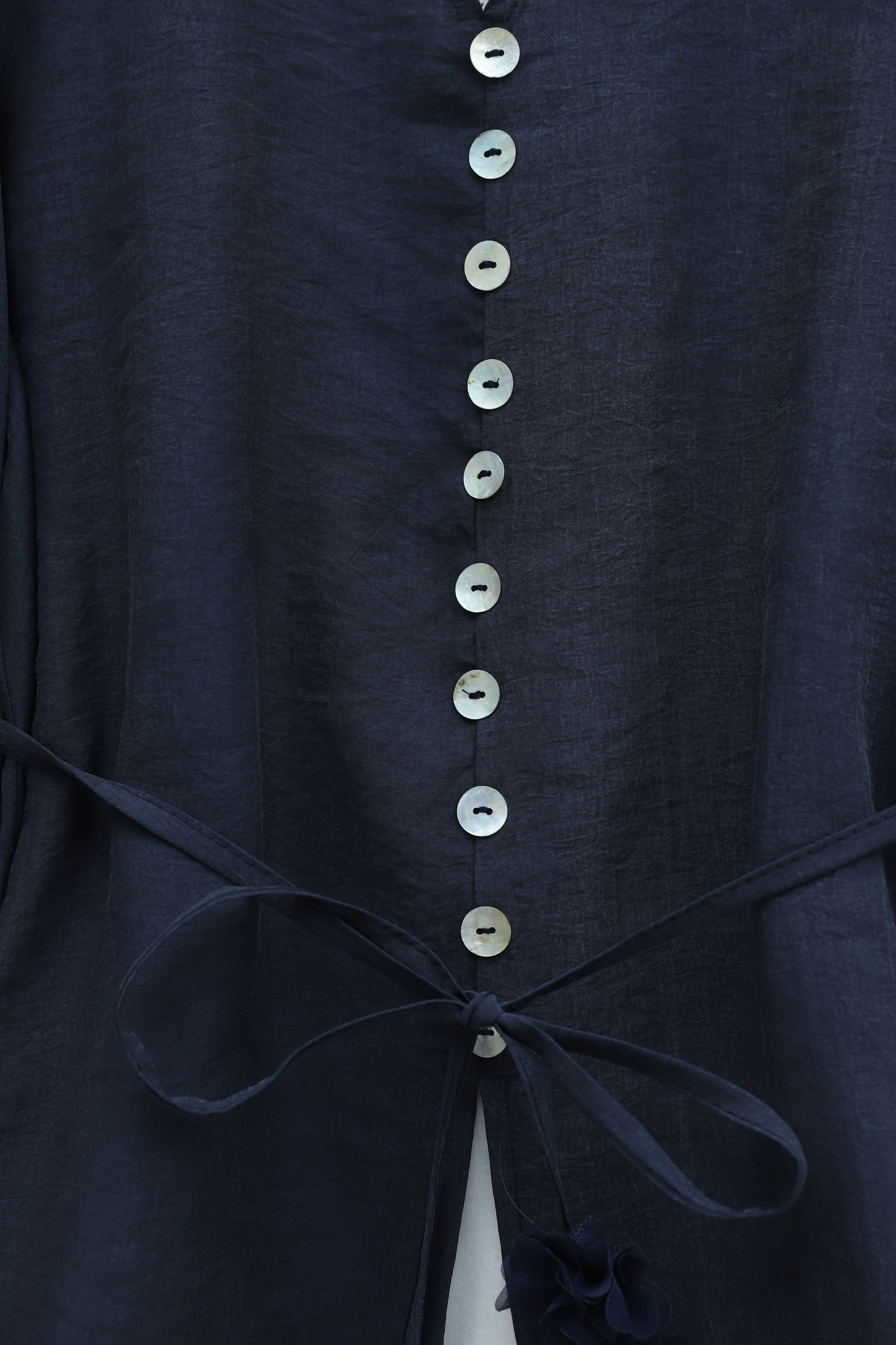 V Yaka Kolu Çiçekli Düğmeli Bağcıklı Modal Gömlek -Laci