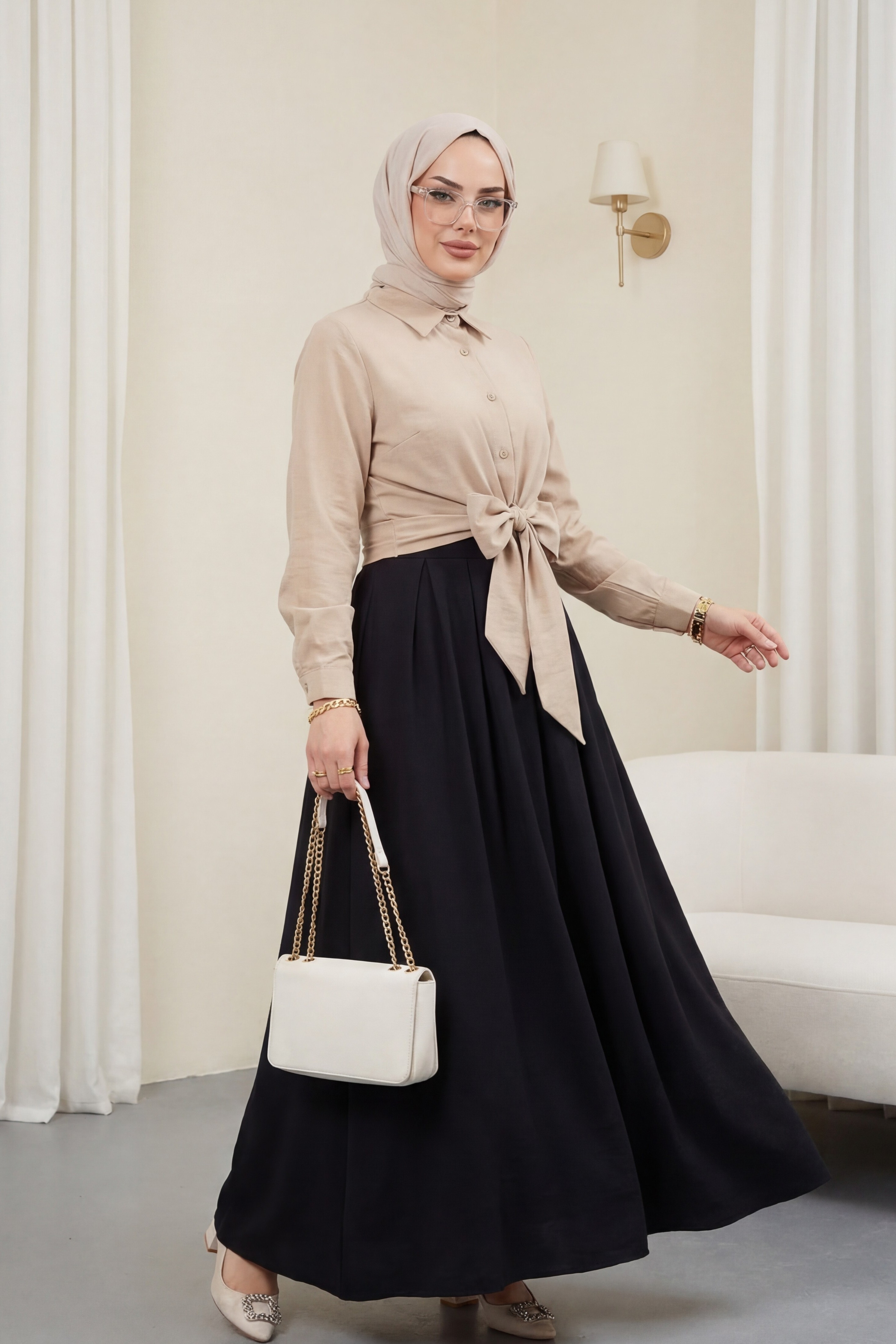 Yan Bağlamalı İspanyol Kol Düğmeli Gömlek, şık ve rahat bir seçenek sunar. İspanyol kol detayları ve yan bağlama tasarımı, zarif bir siluet yaratırken, düğmeli yapısı klasik bir şıklık katar. Hem günlük hem de özel kombinlerde rahatça kullanılabilir.
