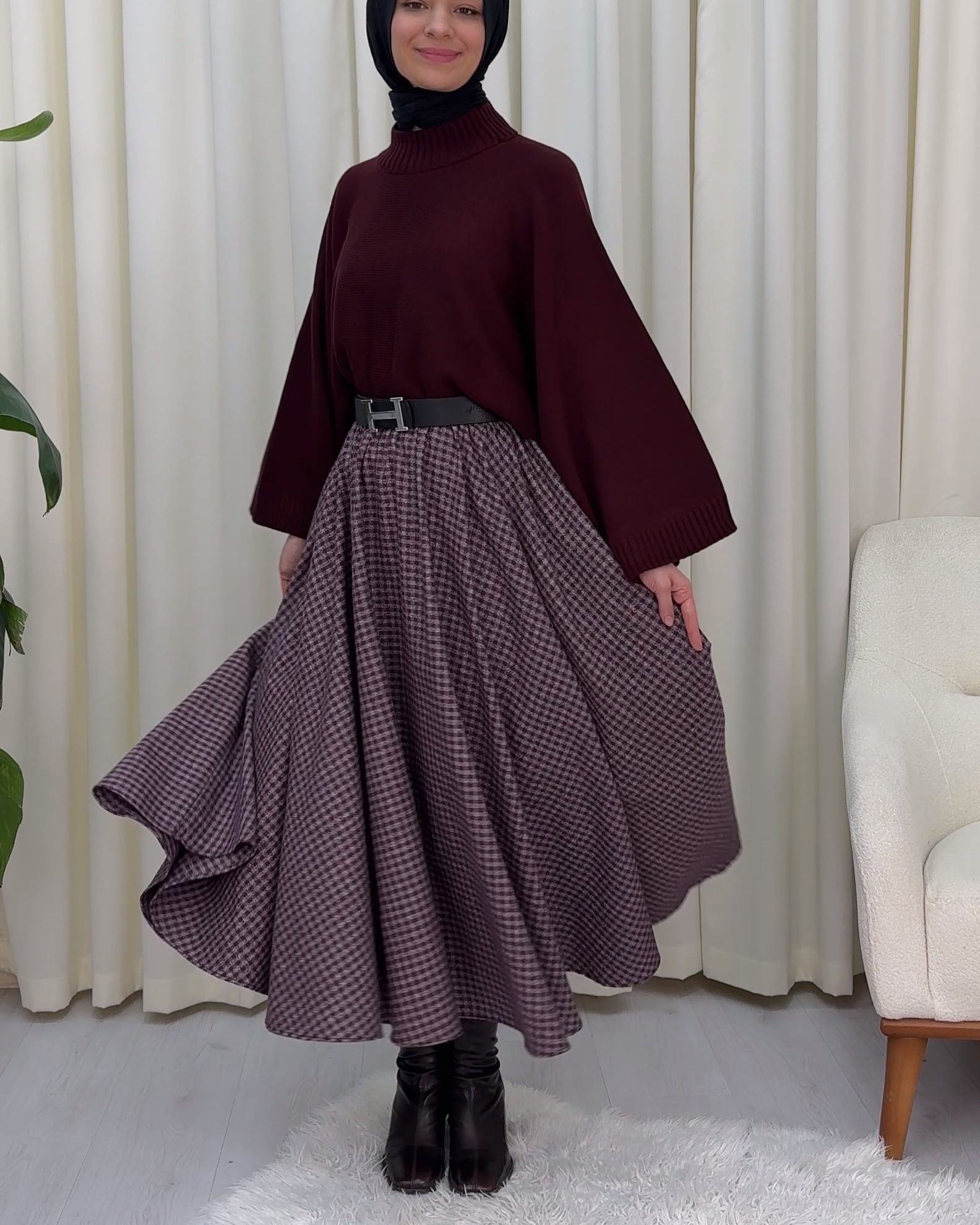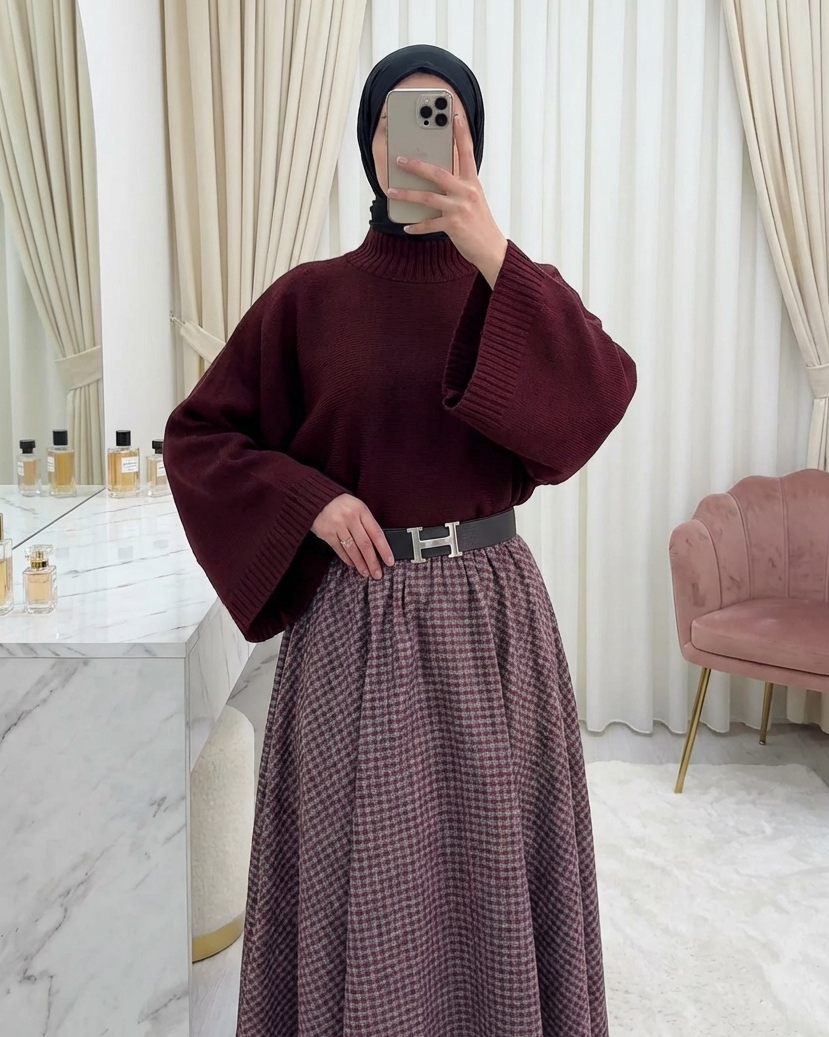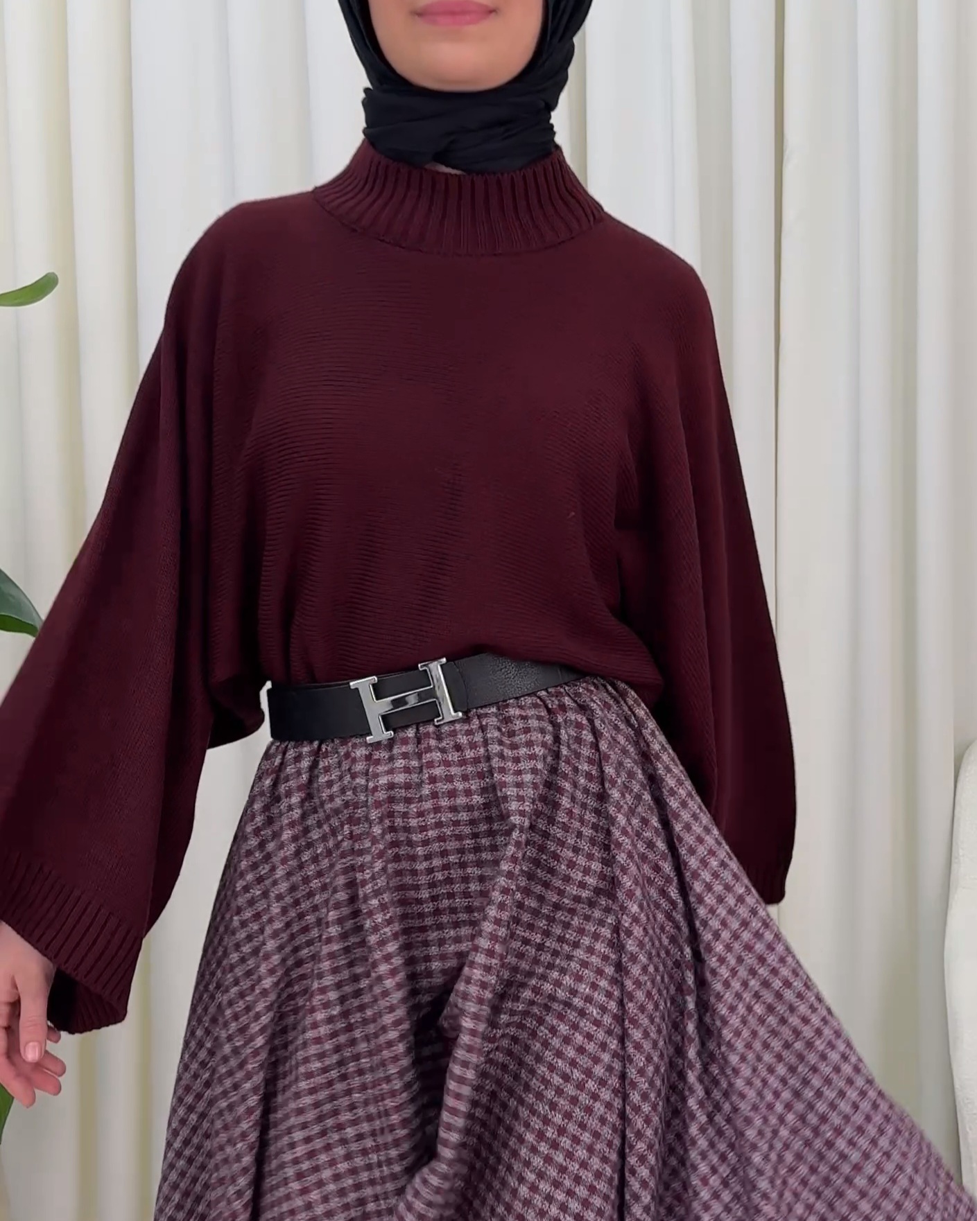 Yarım Boğaz Krop Triko Kazak -Bordo - 207-1593-R04