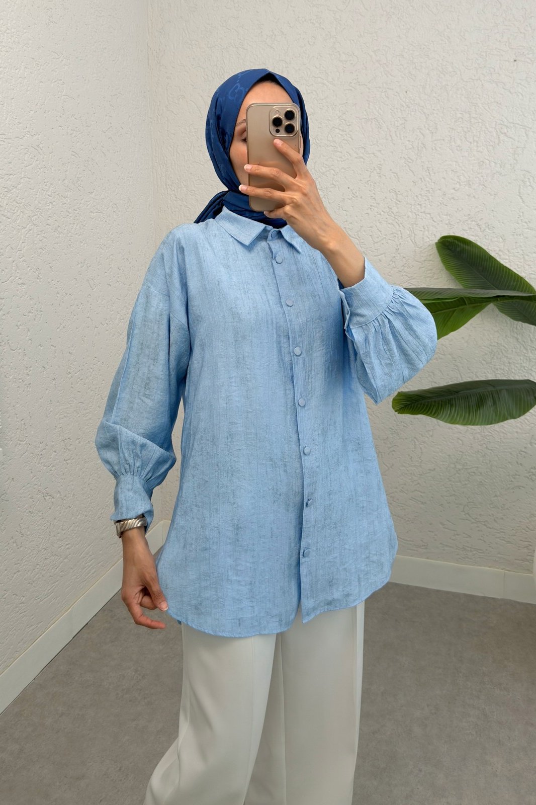 Yırtmaçlı Eteği Oval Kesim Gömlek -Bebe Mavi
