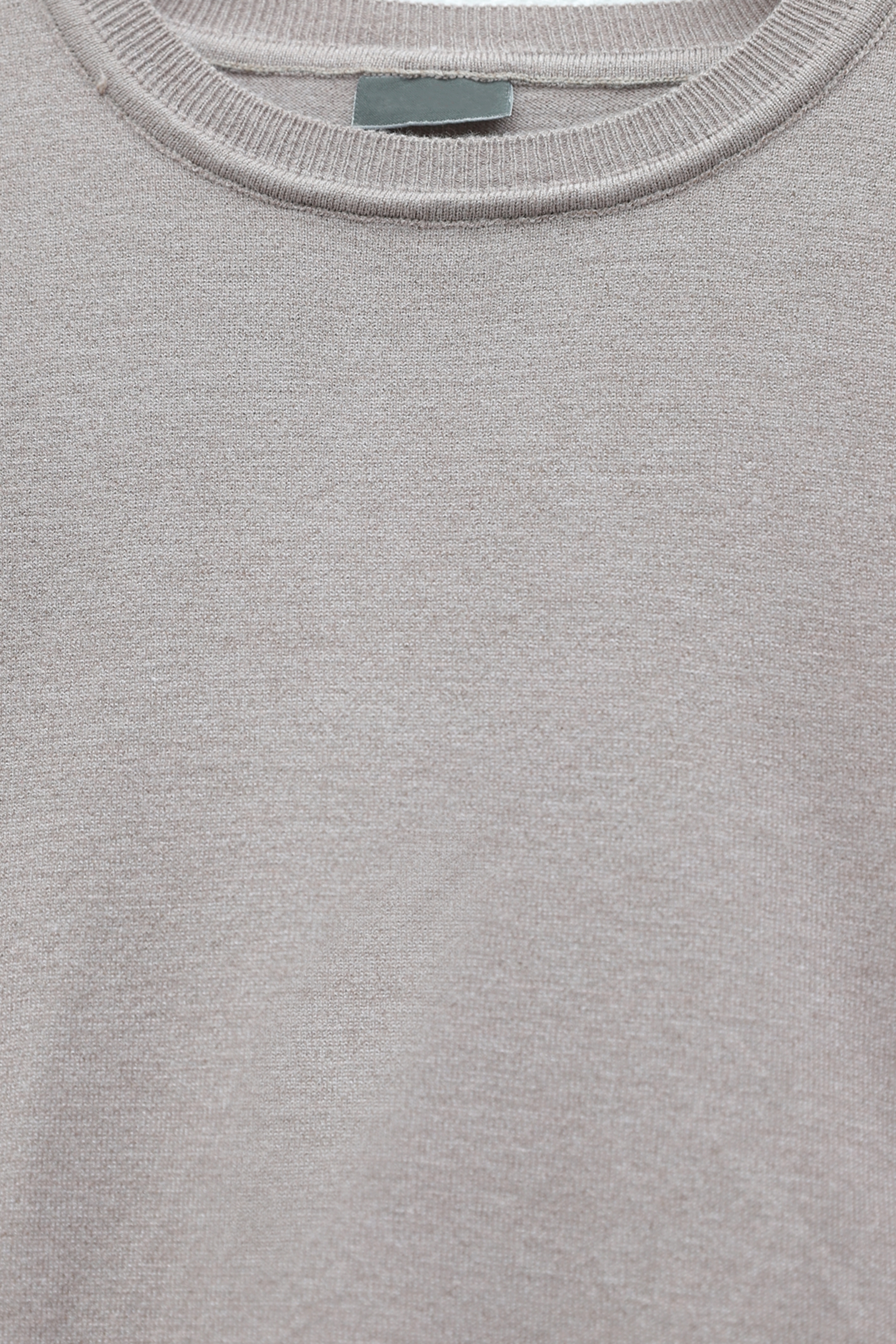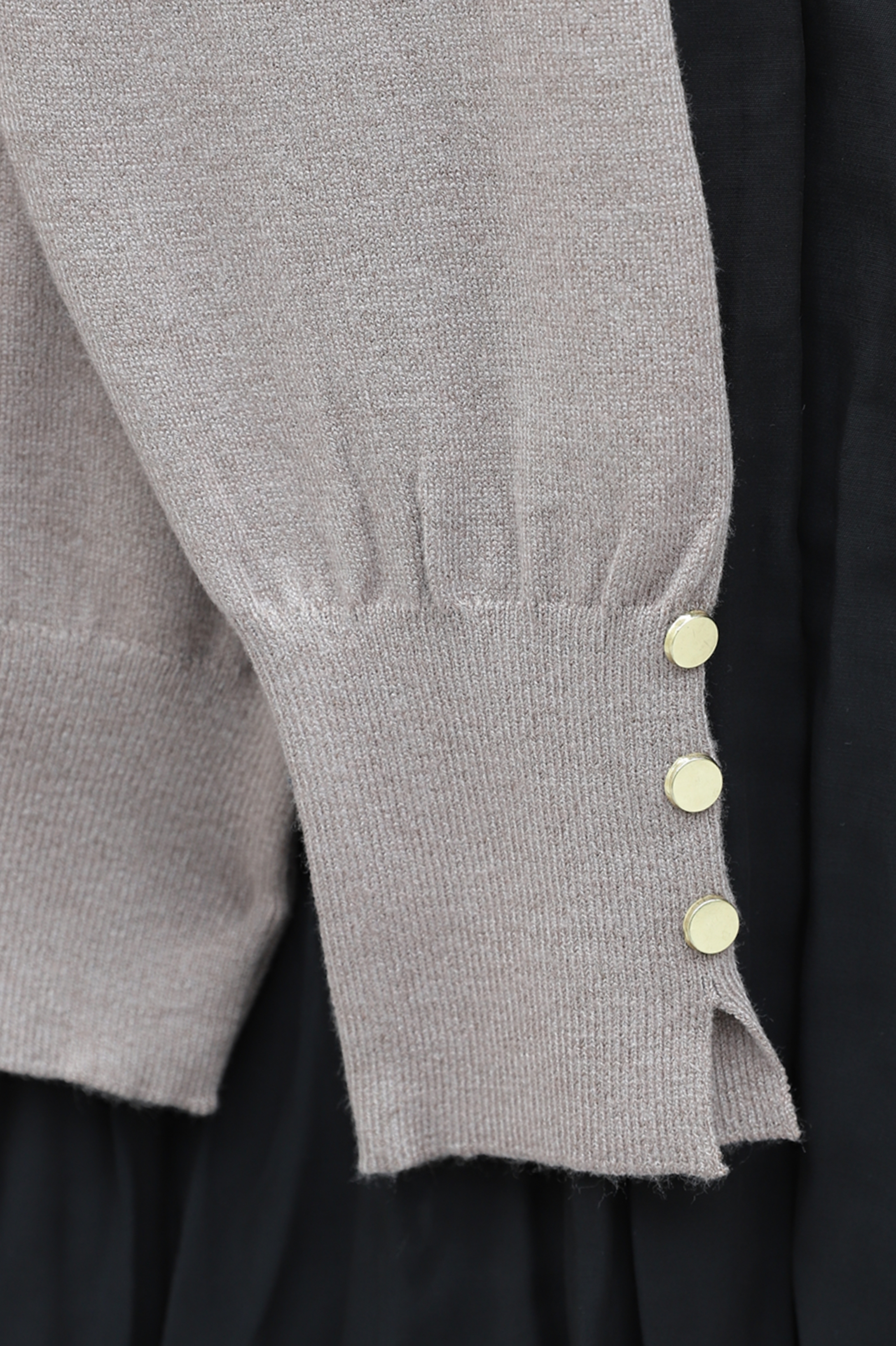 Yuvarlak Yaka Kolu Düğme Detaylı Triko Tunik -Açık Kahve
