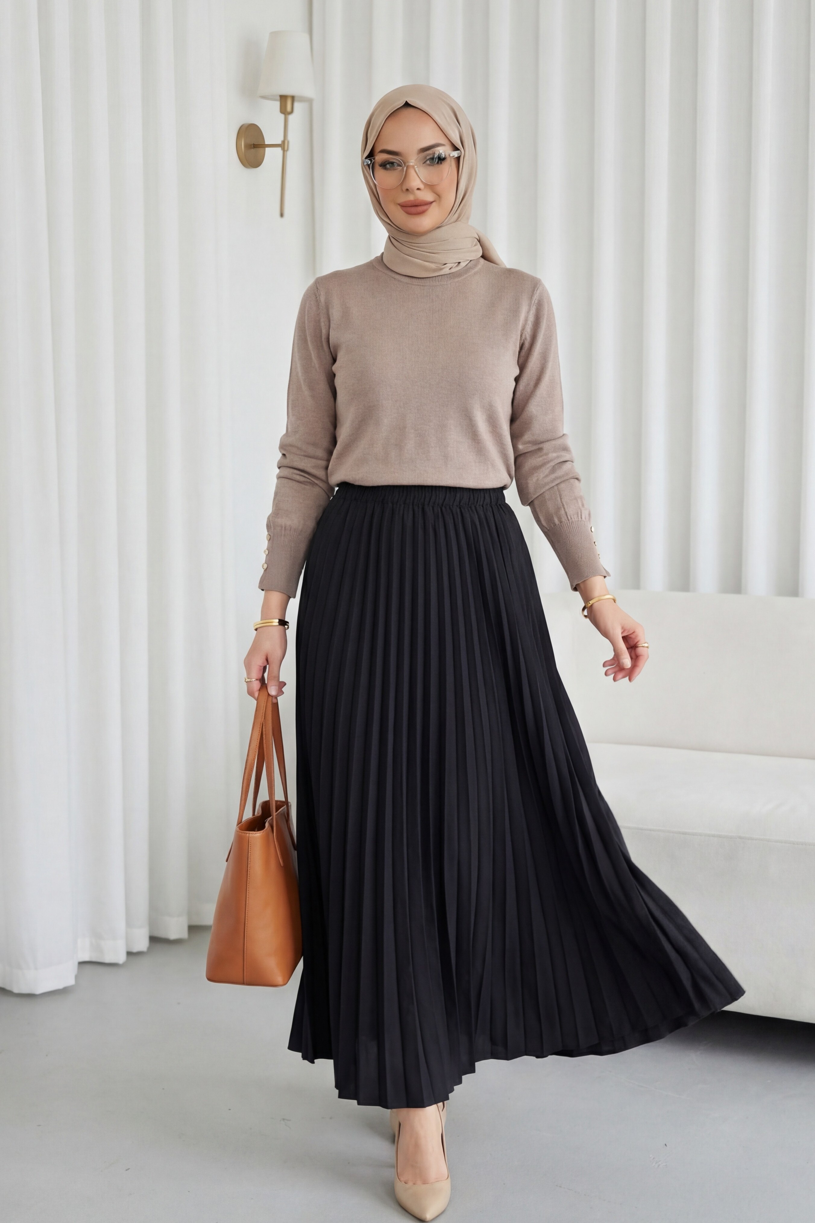 Yuvarlak Yaka Kolu Düğme Detaylı Triko Tunik, rahat ve şık bir stil sunar. Yuvarlak yaka tasarımı sade bir görünüm sağlarken, kol düğme detayları tasarıma zarif bir dokunuş katar. Triko kumaşı yumuşak ve konforludur. Günlük kombinlerde kolayca tercih edilir. Vücuda oturan fakat sıkmayan ideal kalıbı ile dengeli bir duruş sağlar.