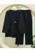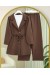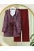 Kemeri Gül Detaylı Kruvaze Yaka Ceket Pantolon Takım -Bordo